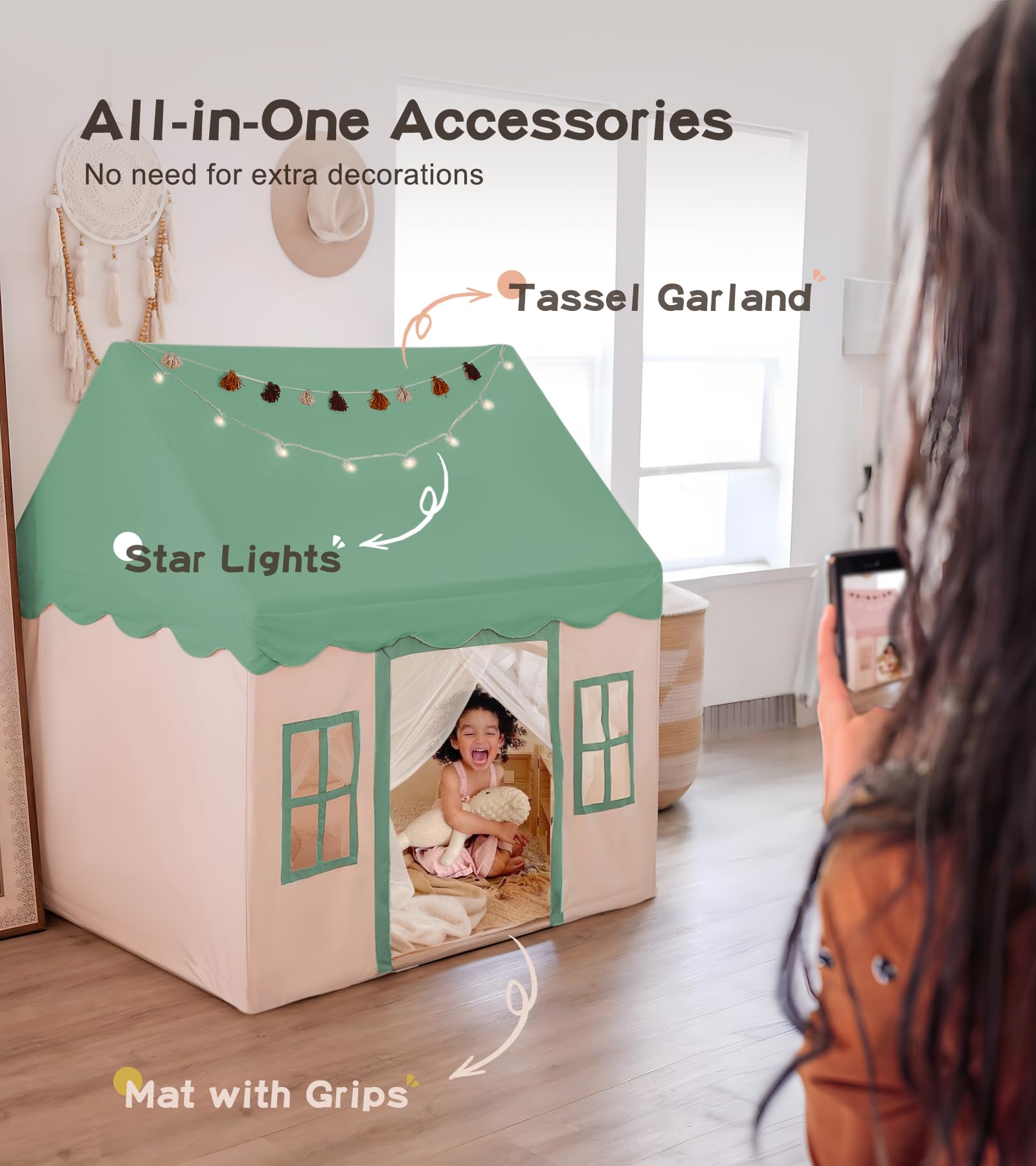 Play Tent with Mat, Star Light Large Kids Playhouse with Windows Easy to Wash, Indoor and Outdoor Play Tents for Kids, Little Dove Toys for Girls, Boys, 47x40x52 (Green Playhouse, Large Size)