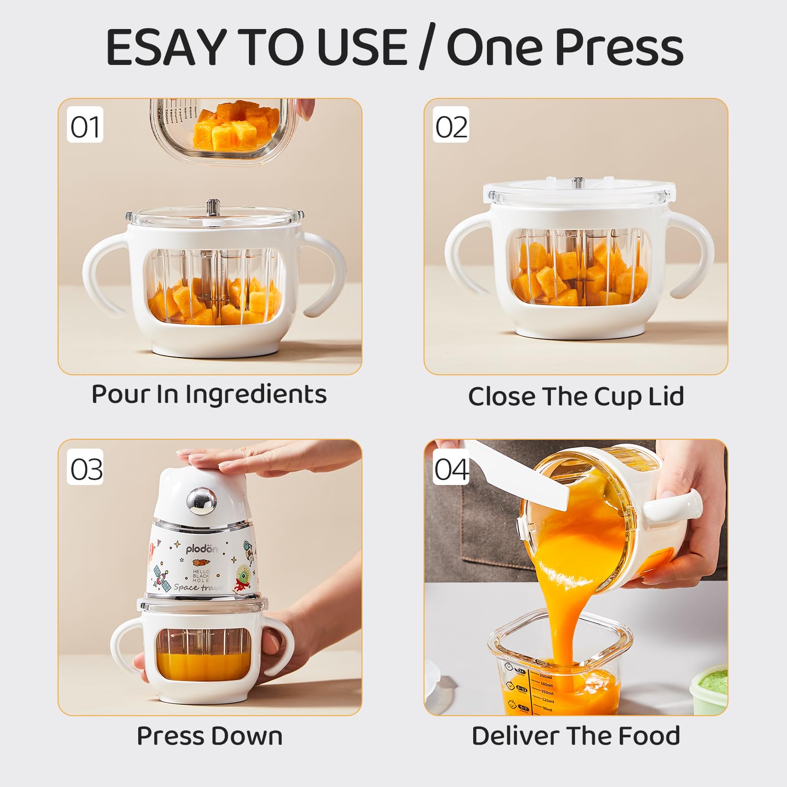 PLODON Baby Food Maker - Food Puree Processor, Fruits, Vegetables, Meats and Potatoes Mini Food Blender, Suitable for Avocados, Grapes and Strawberries Space Silver, 10 oz Gift Package
