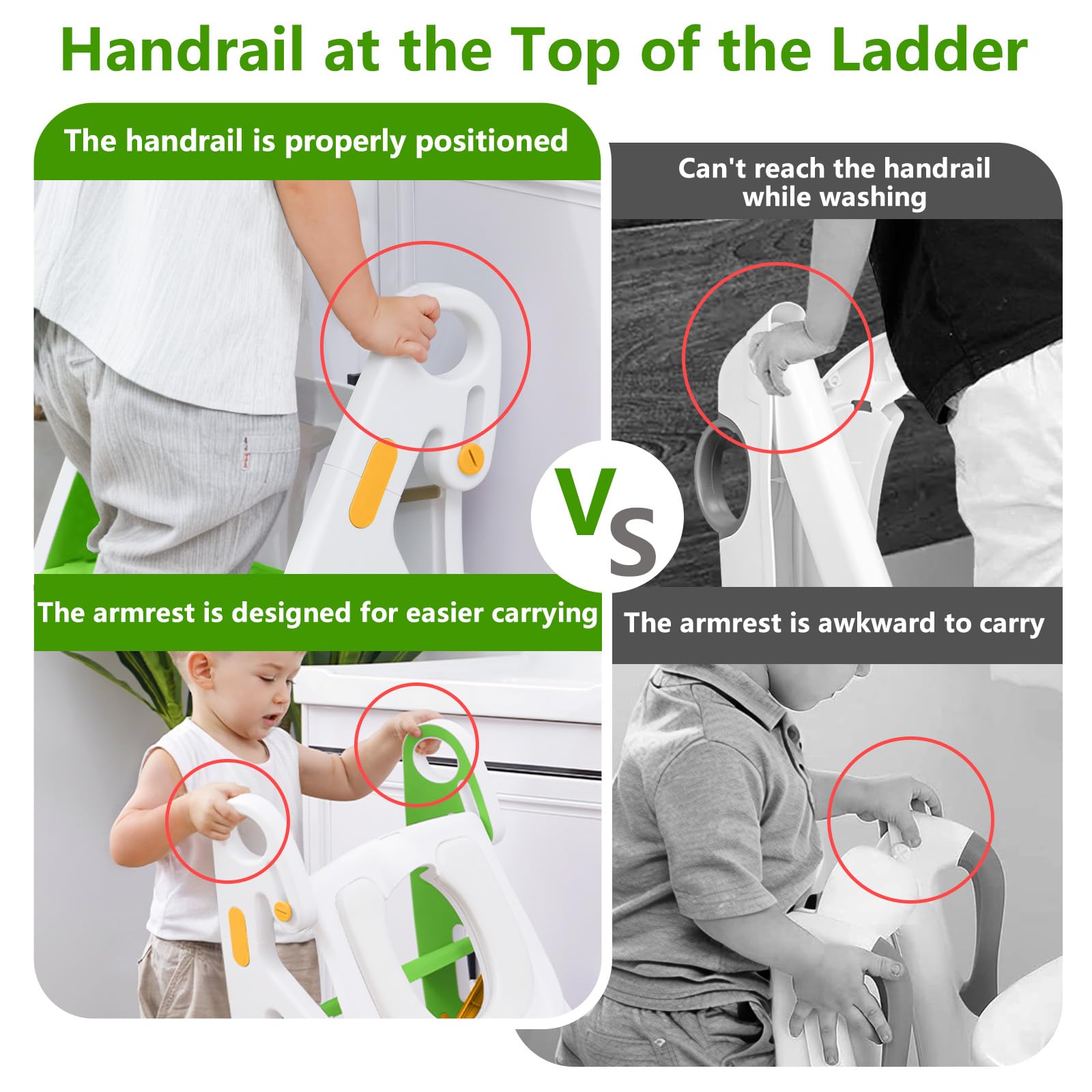 - 【2 in 1 Design】: Used as a toilet seat & a step stool, help children go to the toilet, wash up, reach high places, and develop independence and confidence