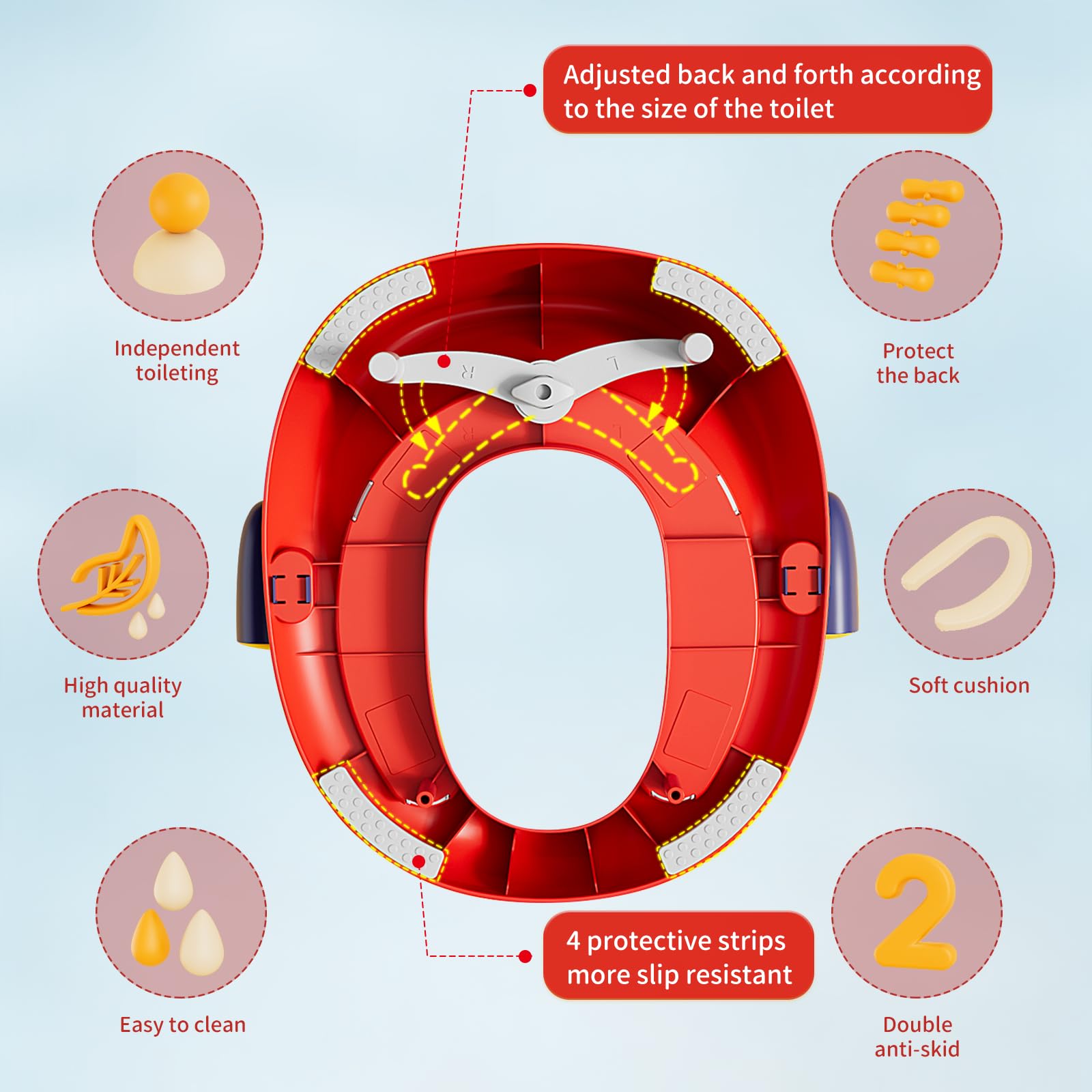 - SAFE AND STURDY TODDLER POTTY SEAT: Whatever, safe is to be first. By using environmental PP material, this potty training toilet is sturdy and can even hold up to 165 lbs, The handle of the toddler toilet seat makes you worry free even when your kids use it alone