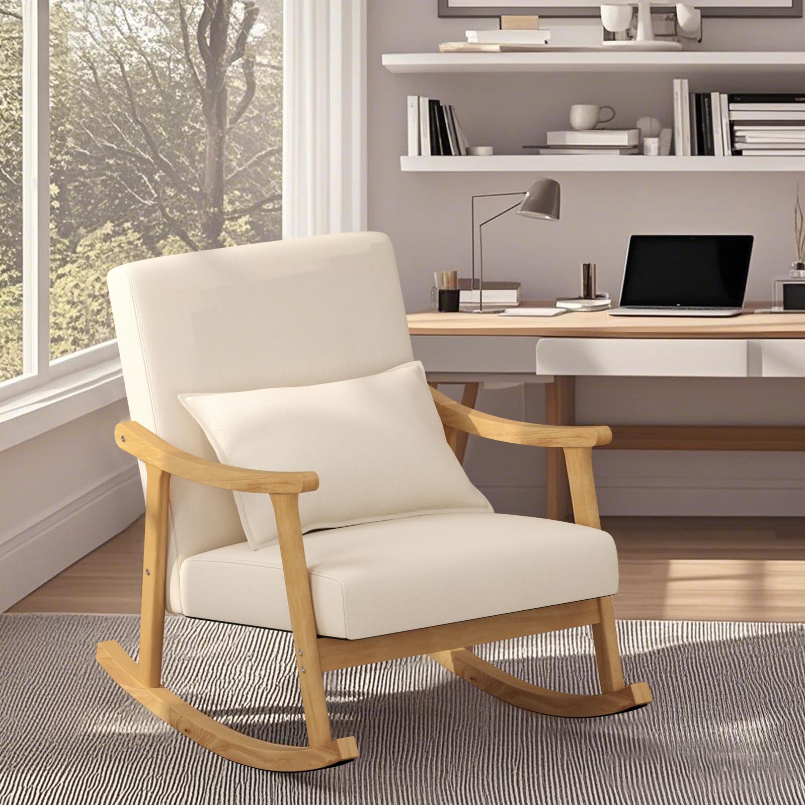 - Our nursing rocking chair is filled with high-density sponge with lumbar pillow, covered with breathable and comfortable faux linen fabric, for all-day sitting or nursing comfort.