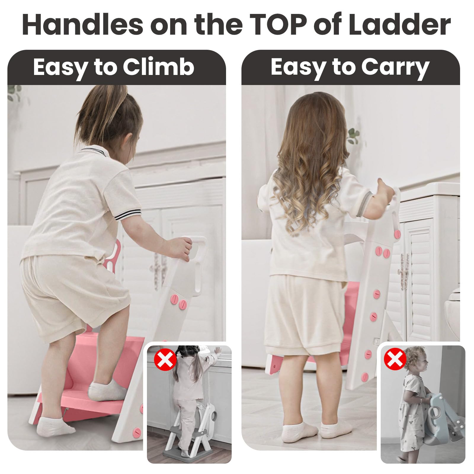 - Adjustable Step for Growing Toddlers: Two step heights fit toddlers of different ages. Raise it for younger kids, lower it as they grow—so their feet rest comfortably without hitting their legs