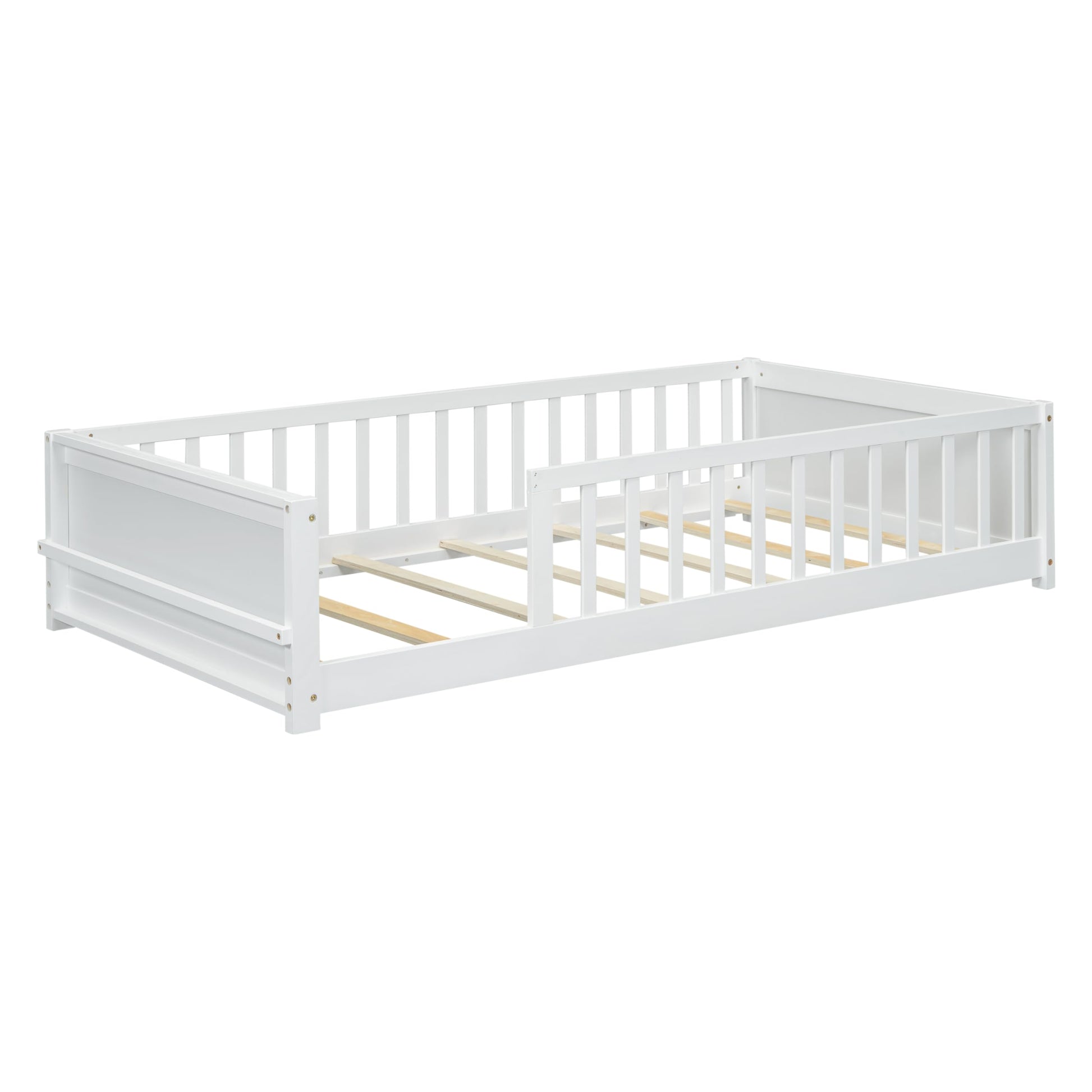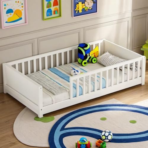 - #1[Practical and Protection Design] The floor bed is an ideal place to sleep and have fun in the slatted bed platform. The bed is most suitable to those compact rooms and limited space with guardrails around the bed to protect from any accidental falling off.
