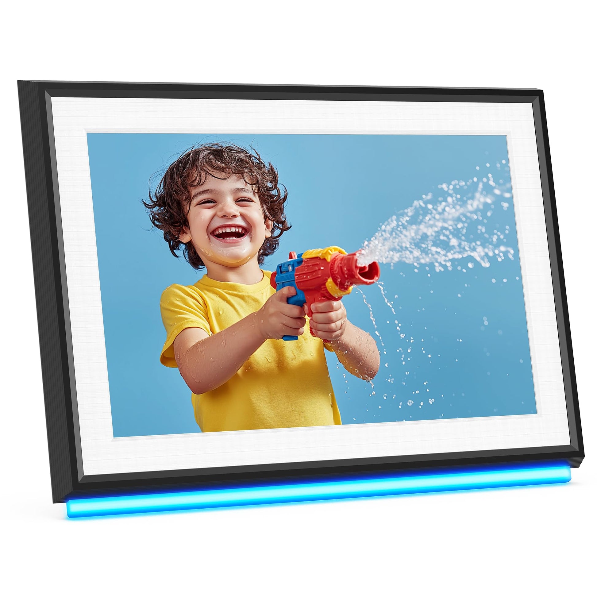 - AI-Powered Neon Light Design: Elevate your viewing experience with the RCA Digital Picture Frame’s AI Lighting Technology. It features multiple LED modes with over 16 million color variations, allowing you to customize the look and feel of your photos to match your mood. Whether showcasing vibrant landscapes or tender family moments, the Uhale photo frame enhances every image.