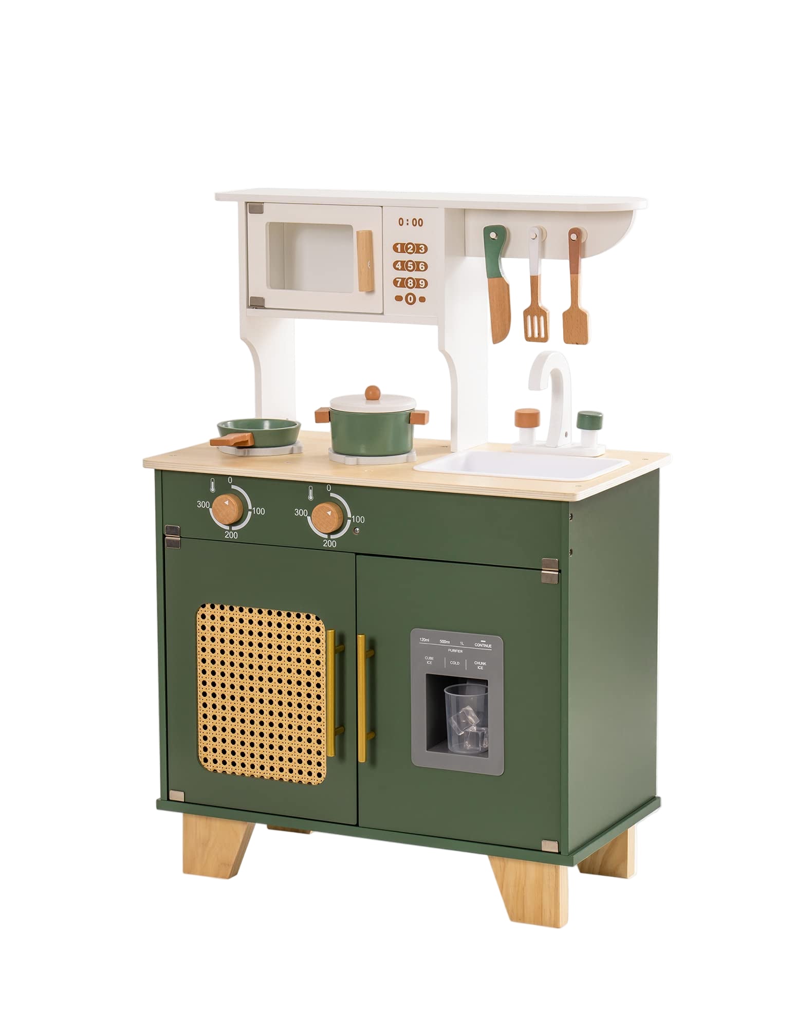 Play Kitchen with Pretend Ice Cube Dispenser for Toddler, Wooden Kids Kitchen Play Set