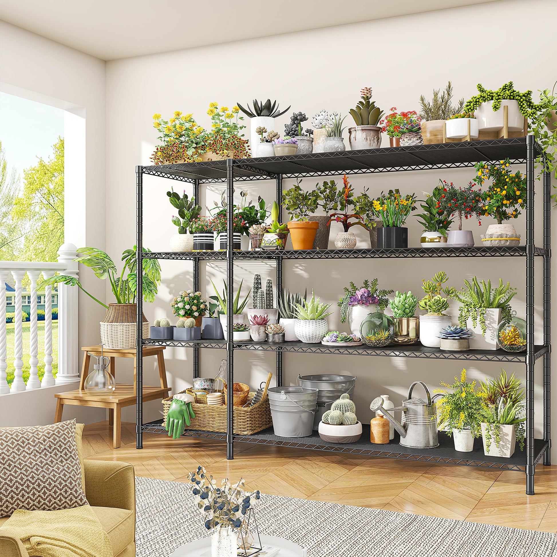 - Made of industrial-grade steel wire Shelves, each garage shelving supports 280 lbs, totaling 1120 lbs. The reinforced frame resists bending and tipping—perfect for kitchen, pantry, basement, and commercial space.