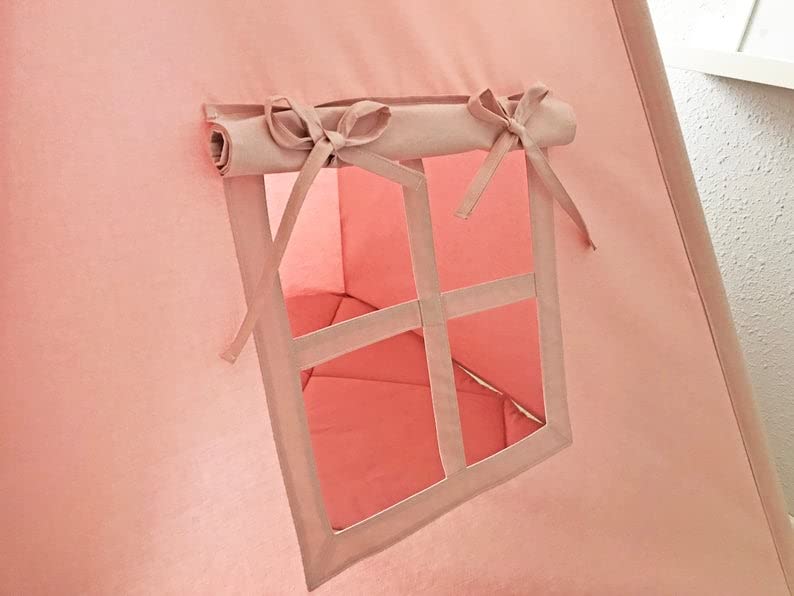 - CHILD SAFE: This adorable tipi tent comes with natural wooden poles and plastic connectors to withstand any kid’s inquisitive play. All seams, raw fabric edges, and openings are reinforced for your Child's Safety, Durability and Years of Safe Play. Wooden poles are sanded to prevent splinters. Comes with a flap door and a mesh window for easy ventilation.