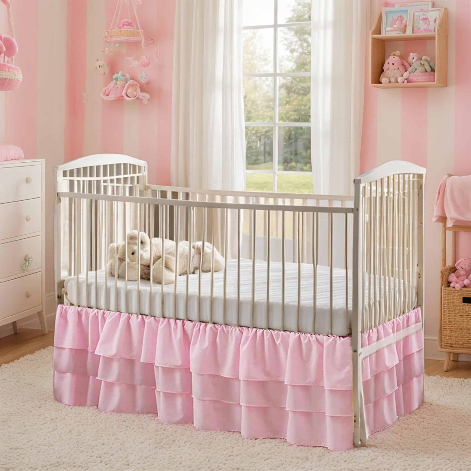 - 【Elegant Nursery Decor】Elevate your baby's room with this adorable ruffled crib skirt. The classic three-tier design adds a touch of elegance and charm, making it an ideal accessory for any nursery.