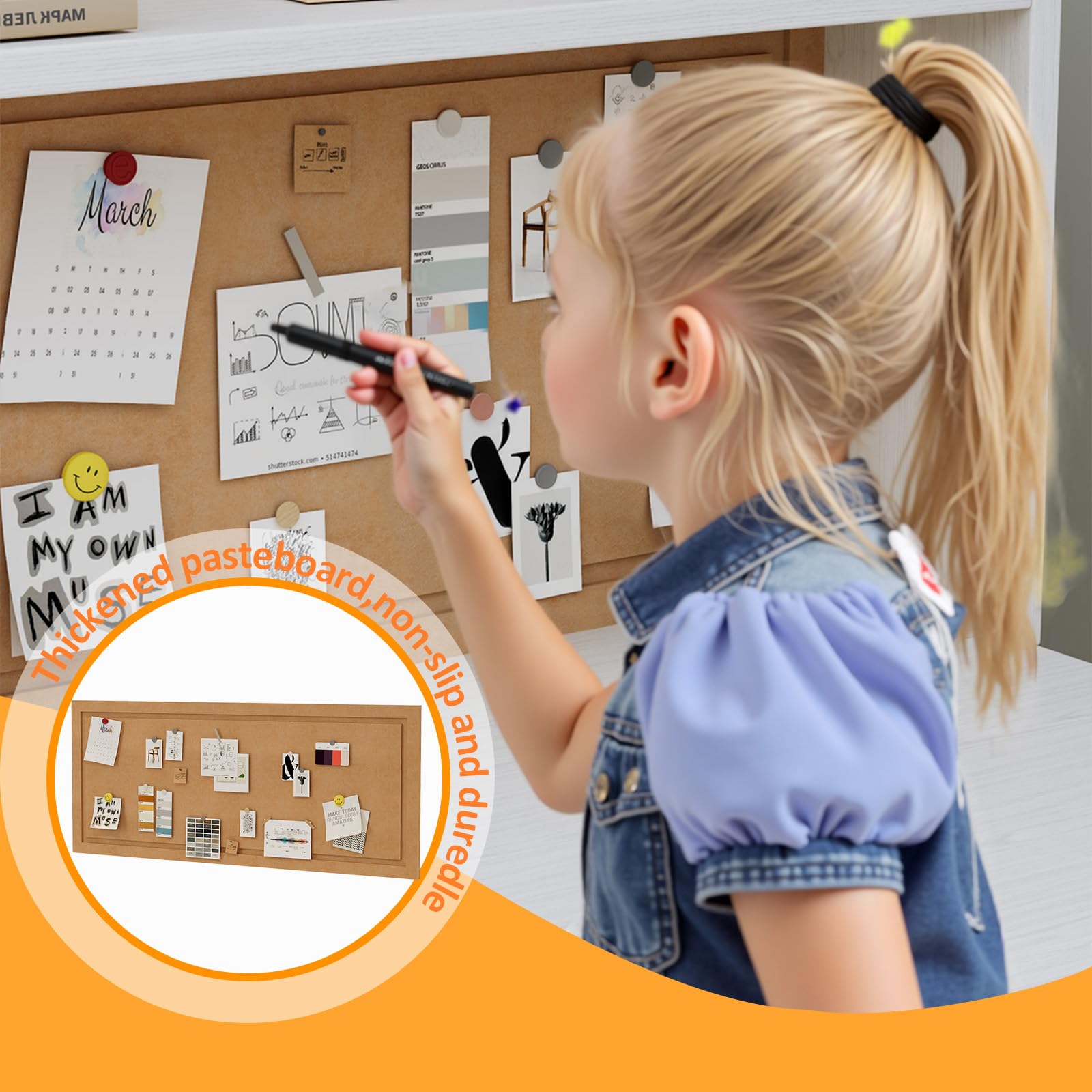 - The kids study table set comes with a multi-functional storage cabinet, with Bulletin Board,which can place books, stationery, toys and other items, providing ample space for children's study. The display board at the top can also be used to place green plants, alarm clocks, etc.