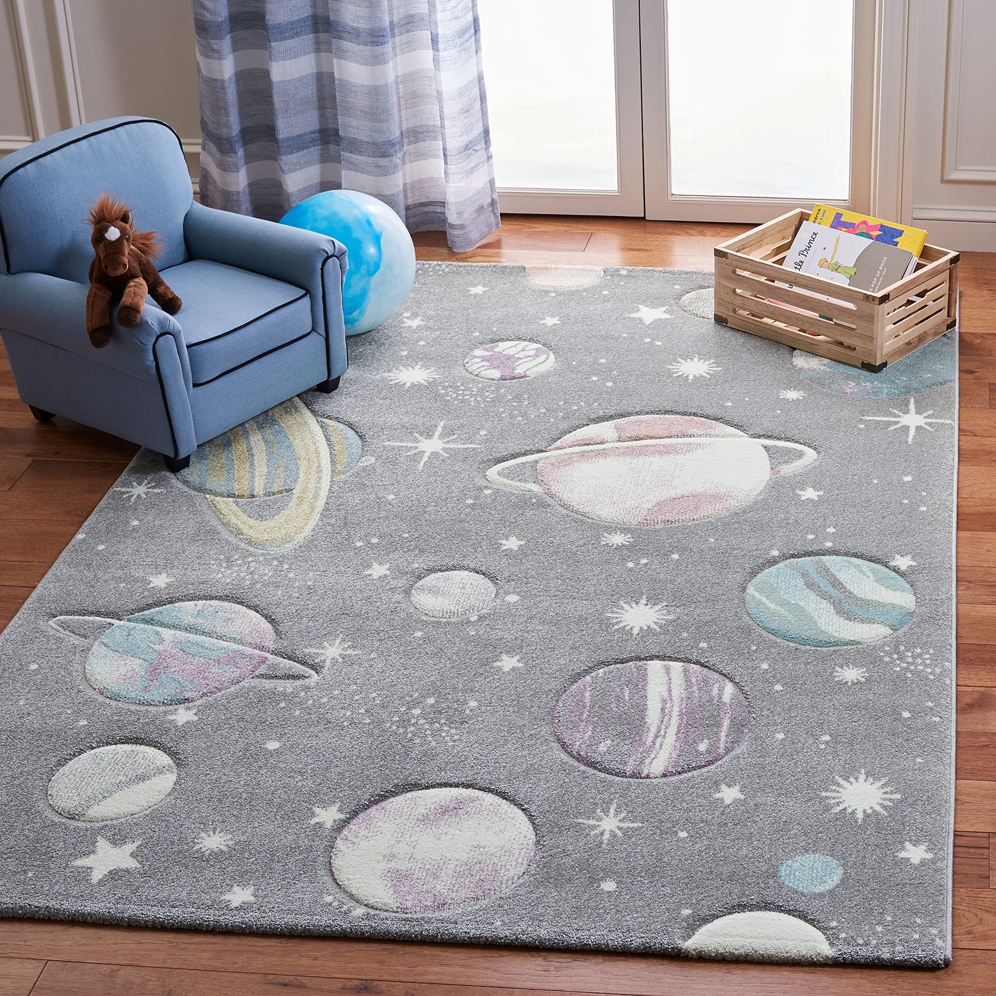 Carousel Kids Collection Area Rug - 5'3" x 7'6", Grey & Lavender, Non-Shedding