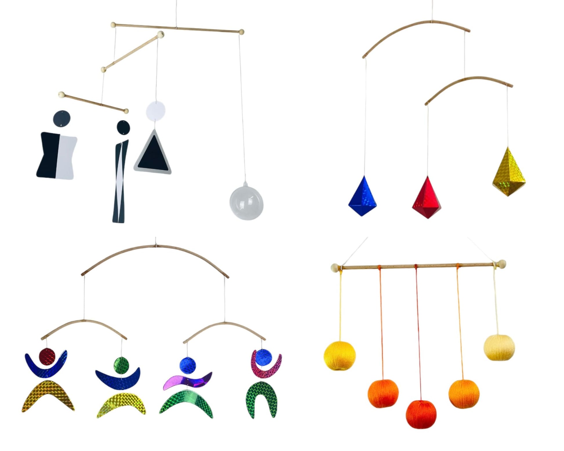 - Set of 4 portable montessori - Munari, Gobbi, Octahedron, Dancers. Montessori mobile, Baby mobile, Hanging mobile baby boy and girl.