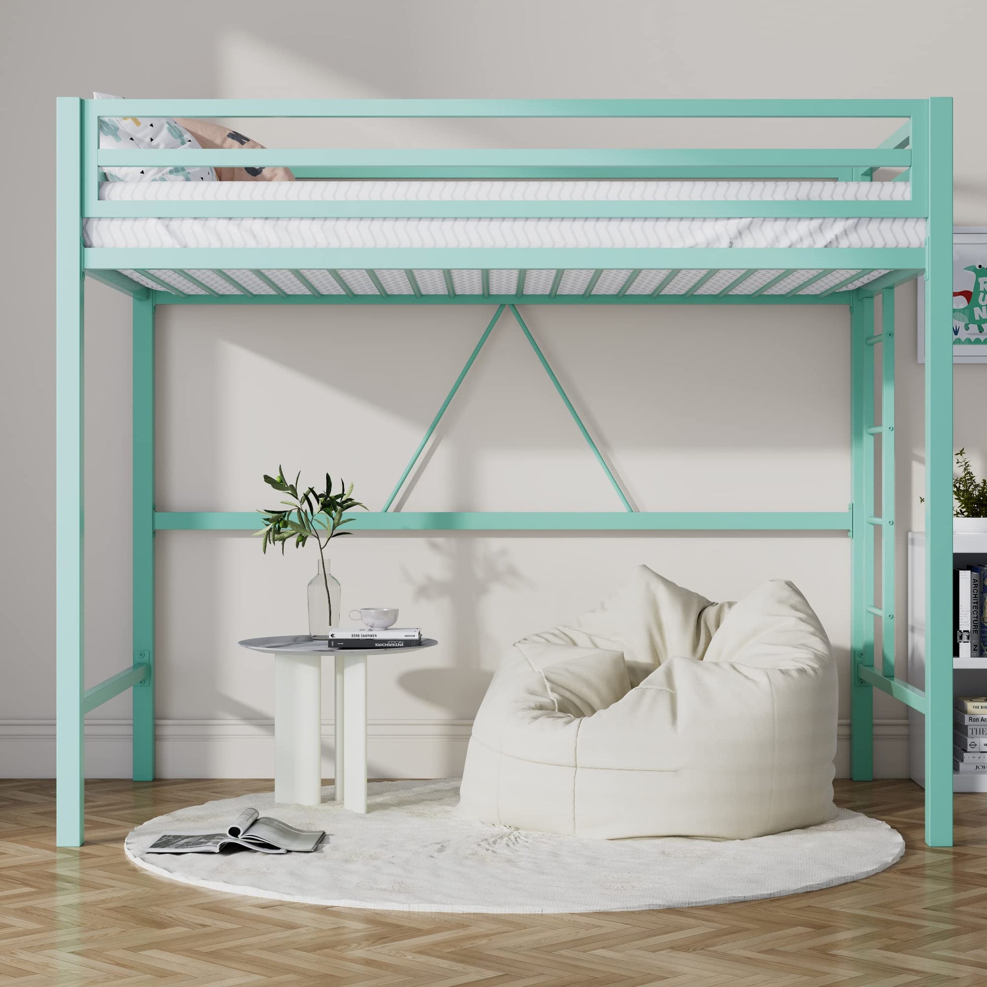 Loft Bed Twin Size with Ladder and Guardrail,Heavy Duty Metal Slats