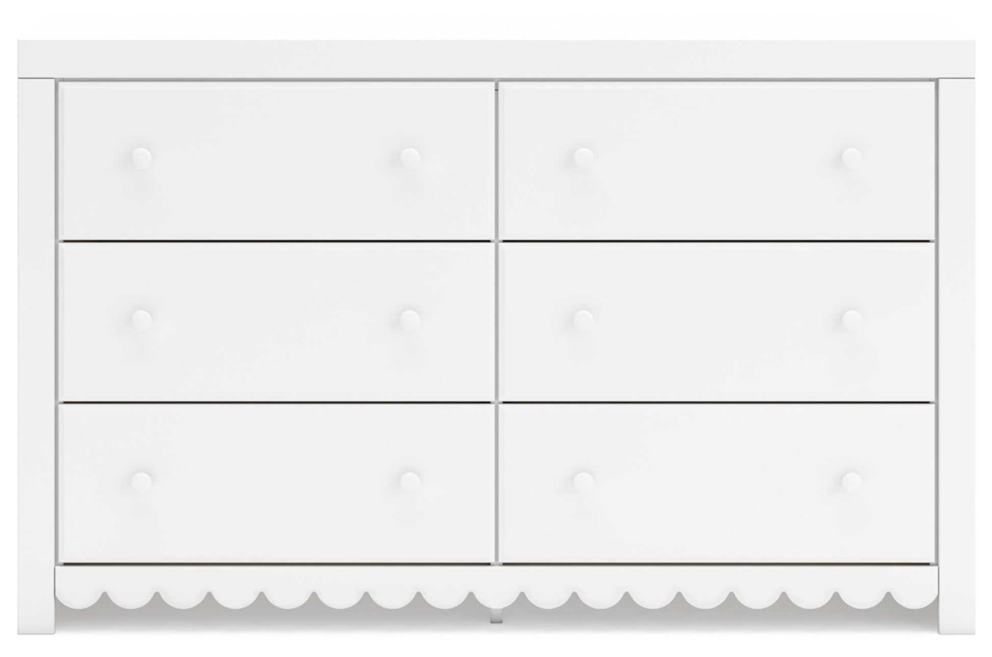 - 6-DRAWER DRESSER: Charmingly cute with its scalloped detailing and crisp white finish, this dresser appeals to both her sense of playful whimsy and your love for modern design