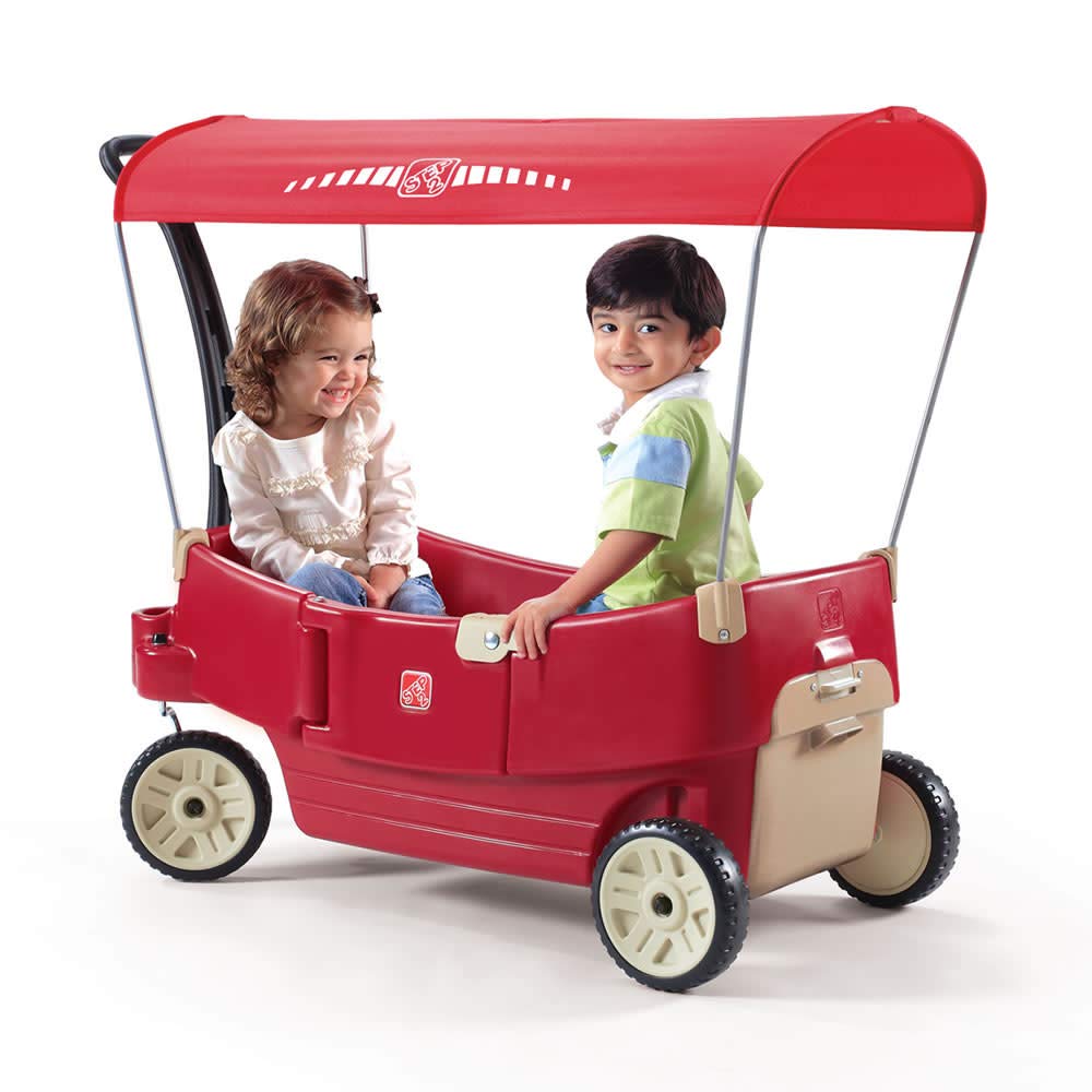 Step2 All Around Canopy Wagon, Kids Ride On Toy, Stroller Substitute, Includes Seat Belts, Made of Durable Plastic, Max Weight 75 lbs., For Toddlers 1.5-5 Years Old