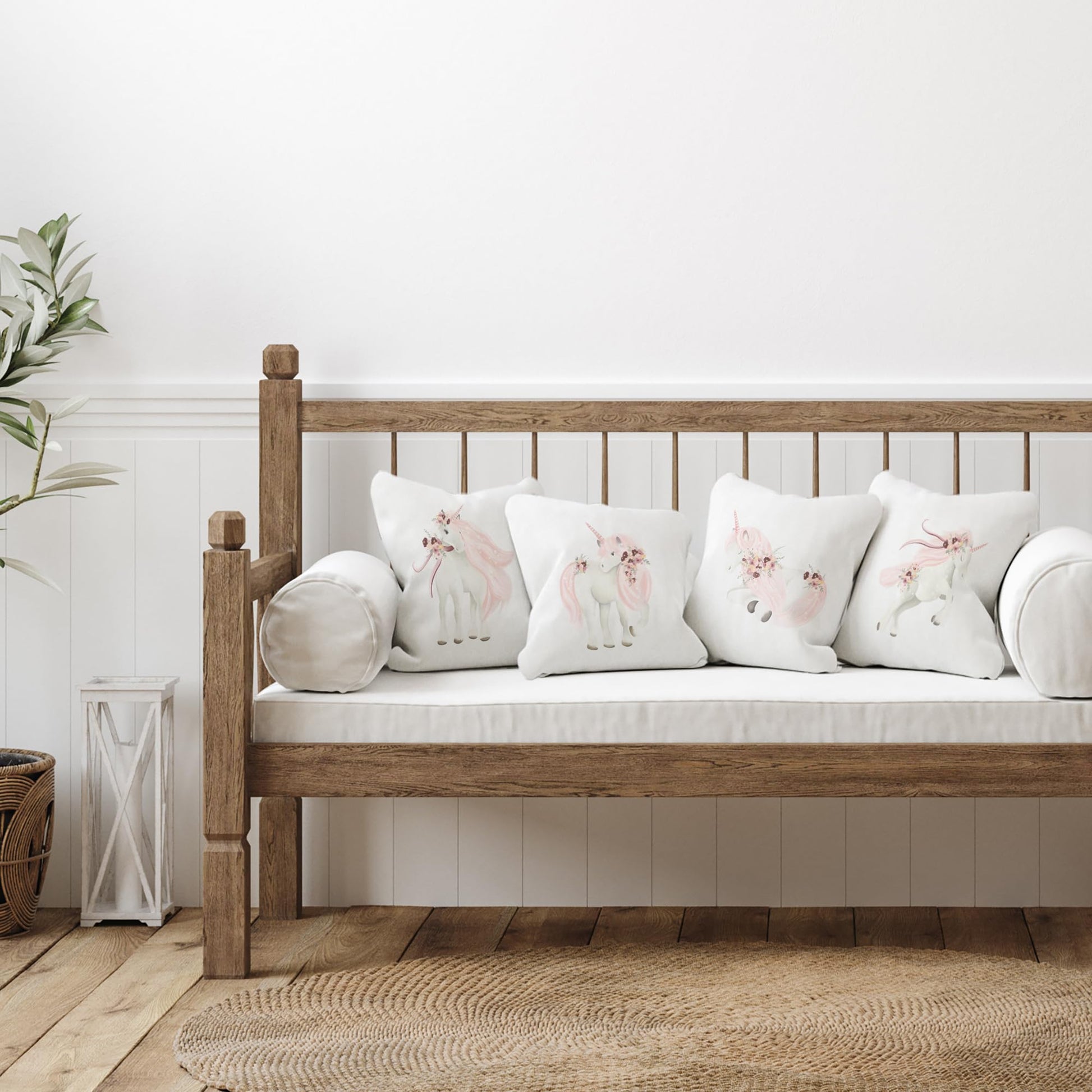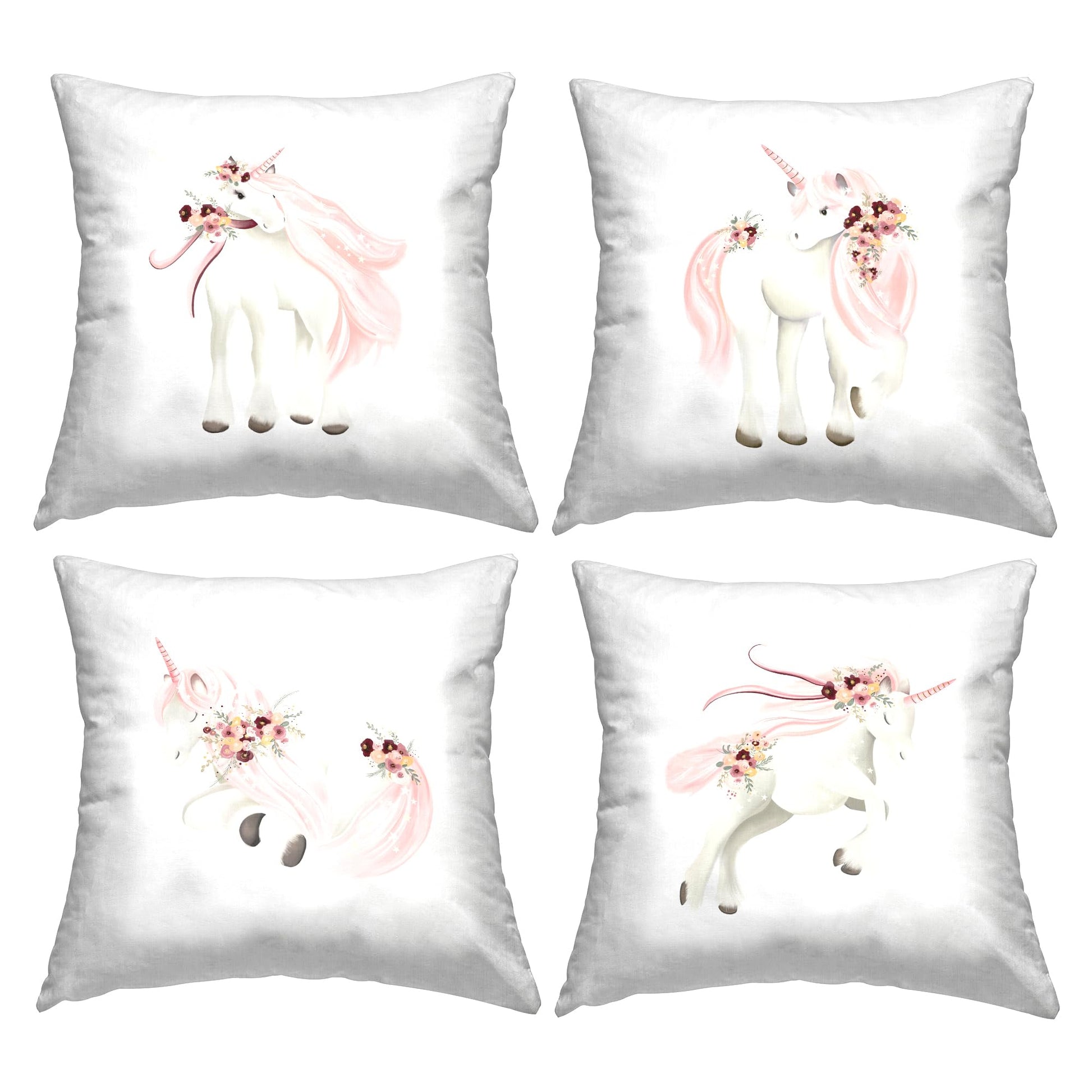 Pink Floral Unicorns Design by Studio Q (Set of 4) Throw Pillow, 18 x 18