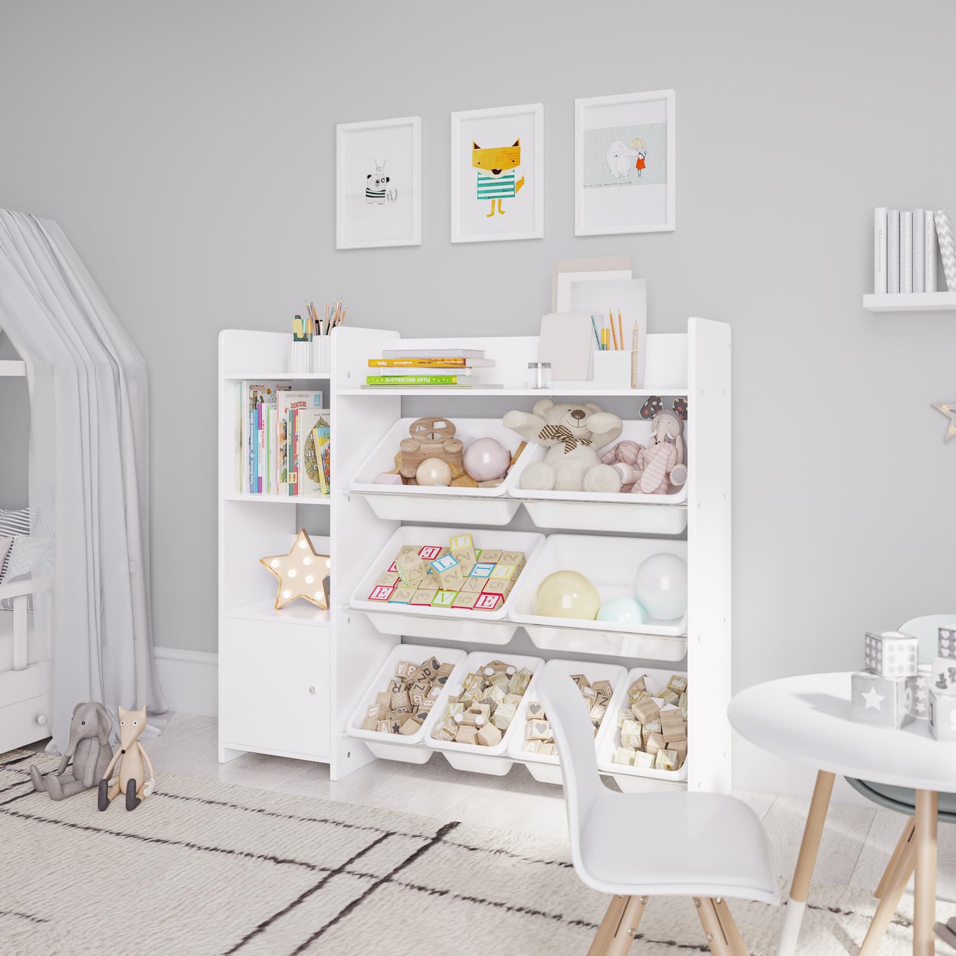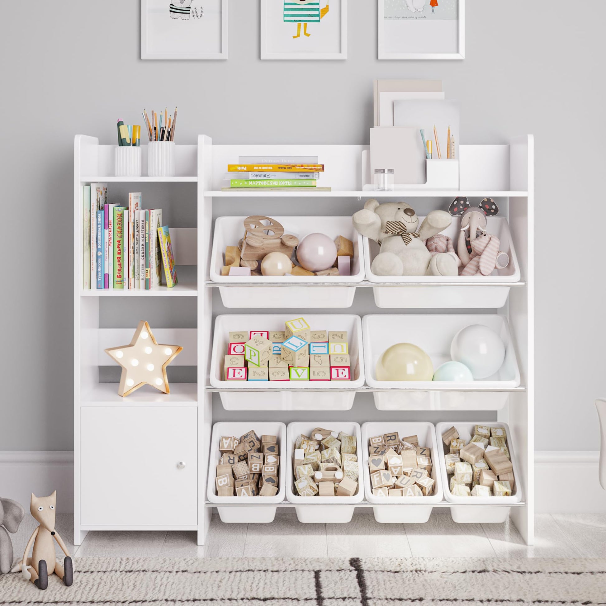 Toy Storage Organizer with Kids Toy Shelf and 8 White Toy Bins – Perfect Toy Storage