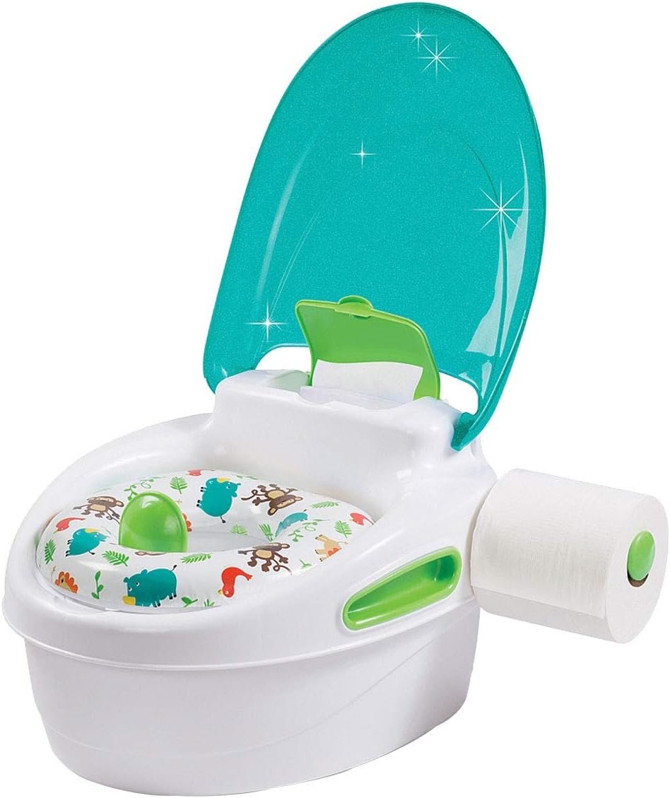 - ADDITIONAL FEATURES: The Step by Step Potty training toilet includes a flushable wipes holder and toilet tissue dispenser for added convenience.