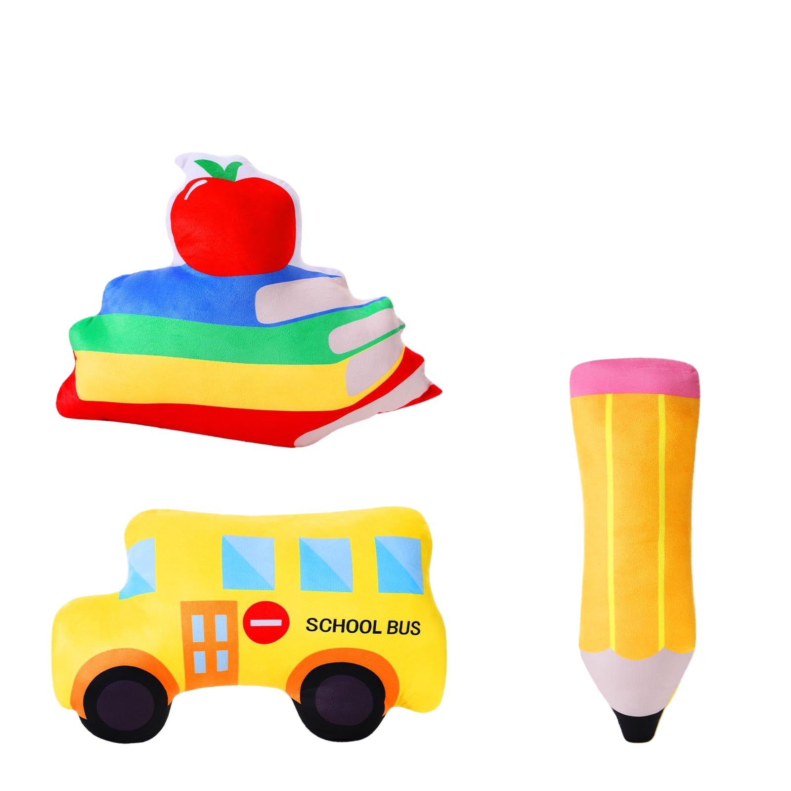 - Package Information: you will receive 3 back to school pillows; These couch decoration pillows are beautiful and practical, in the shape of apple, book, a school bus, and a pencil, and are suitable for decorating back to school party or decorating home classroom, which will add back to school atmosphere to your home