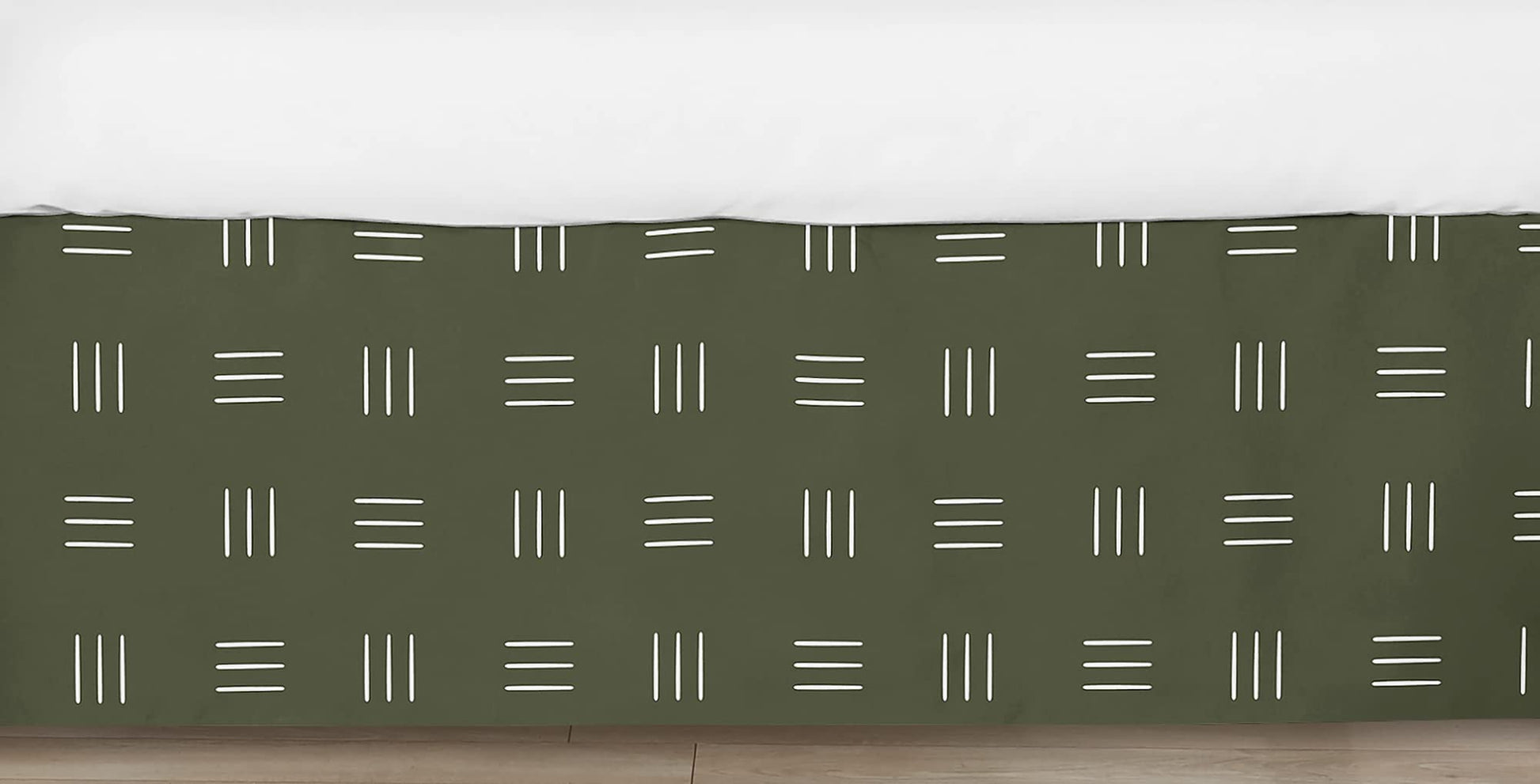 Sweet Jojo Designs Hunter Green Boho Mudcloth Boy Girl Baby Crib Bed Skirt Nursery Dust Ruffle White Bohemian Woodland Tribal Southwest Mud Cloth Hatch Gender Neutral Triple Line Safari Jungle Animal