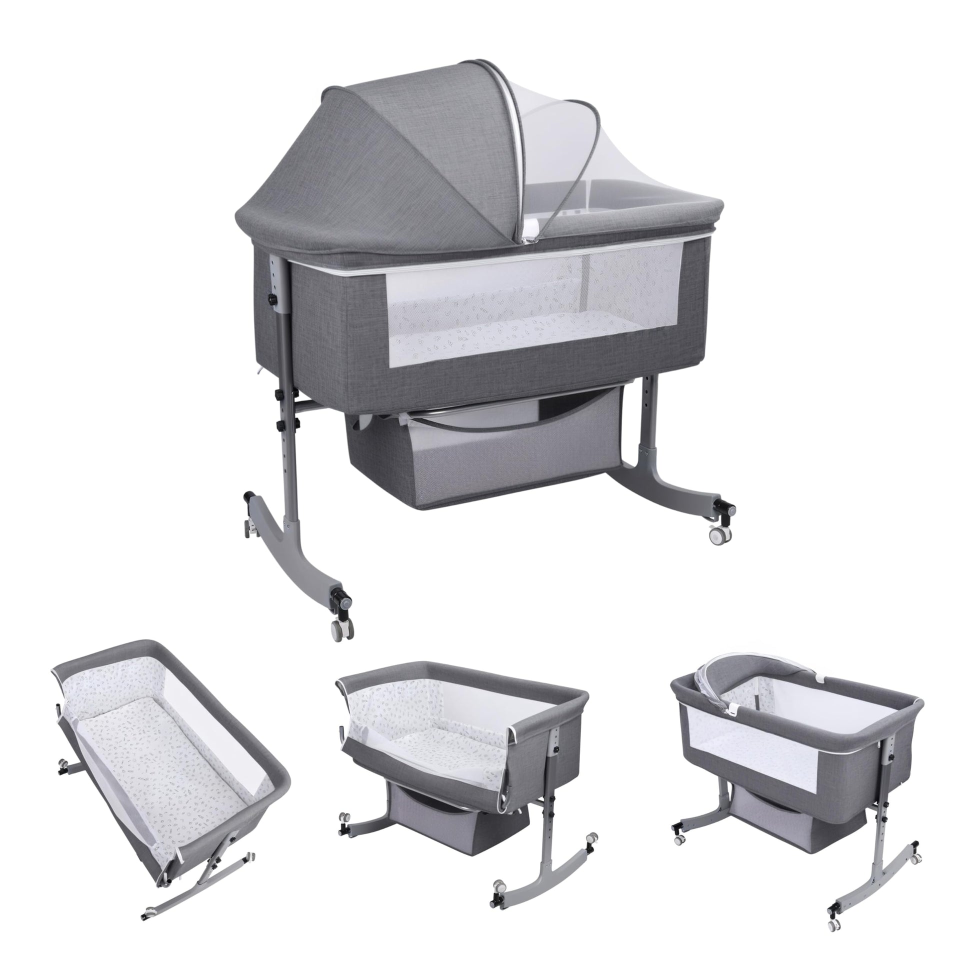 - Safety Material and Sturdiness: Crafted from safe metal and textile materials, our movable beside bassinet with mosquito net (grey) prioritizes your baby's safety. This ensures a secure sleeping space, allowing parents to rest easy knowing their child is protected.