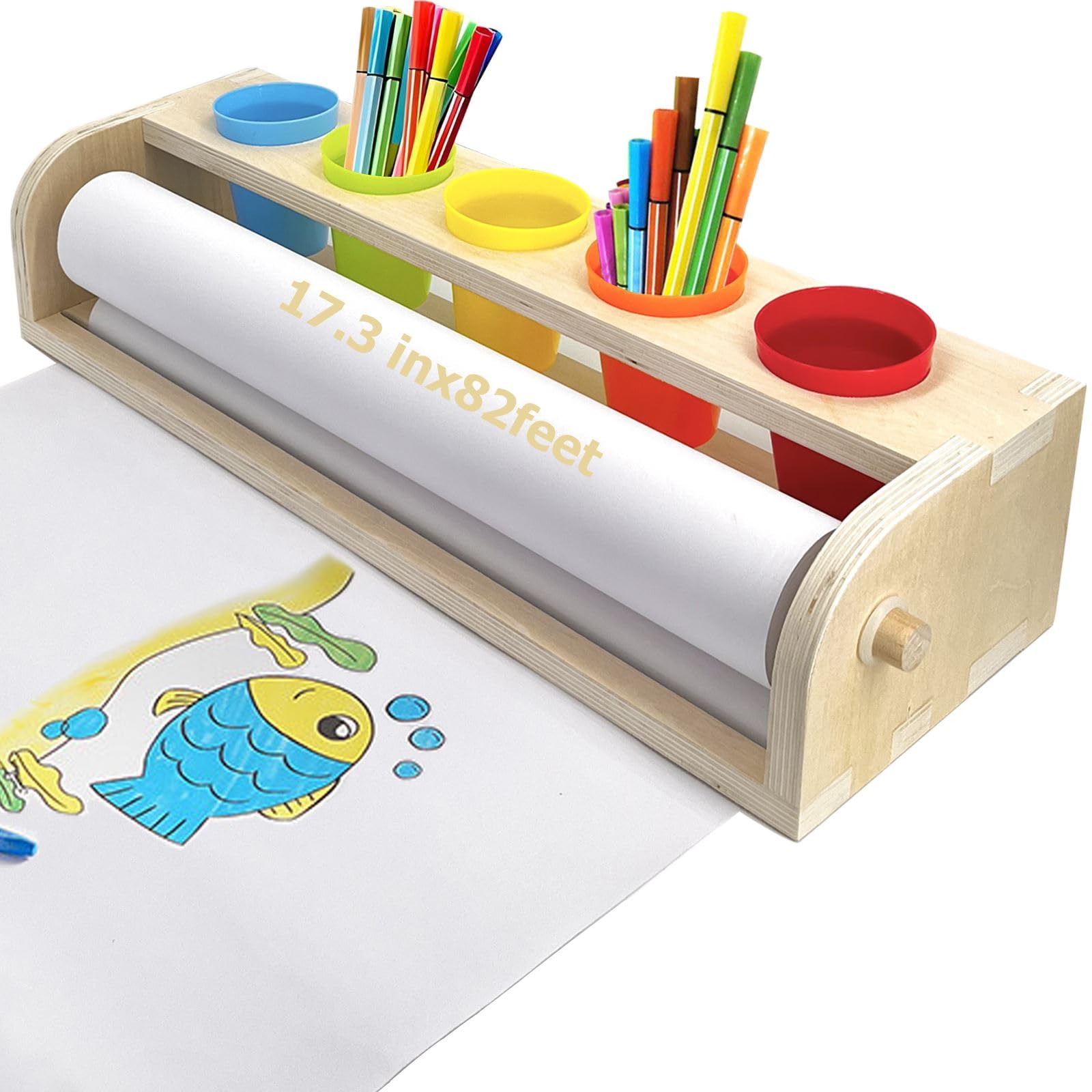 - SAFE DESIGN & 5 PEN CUPS: The art roll paper dispenser festures a wood tear strip that detaches paper easily, making it safe for kids to tear desired size paper without using tools. 5 large slots conveniently holds pencil cups, keeping lots of art supplies within easy reach and neatly organized, cultivating kid's tidy storage habits