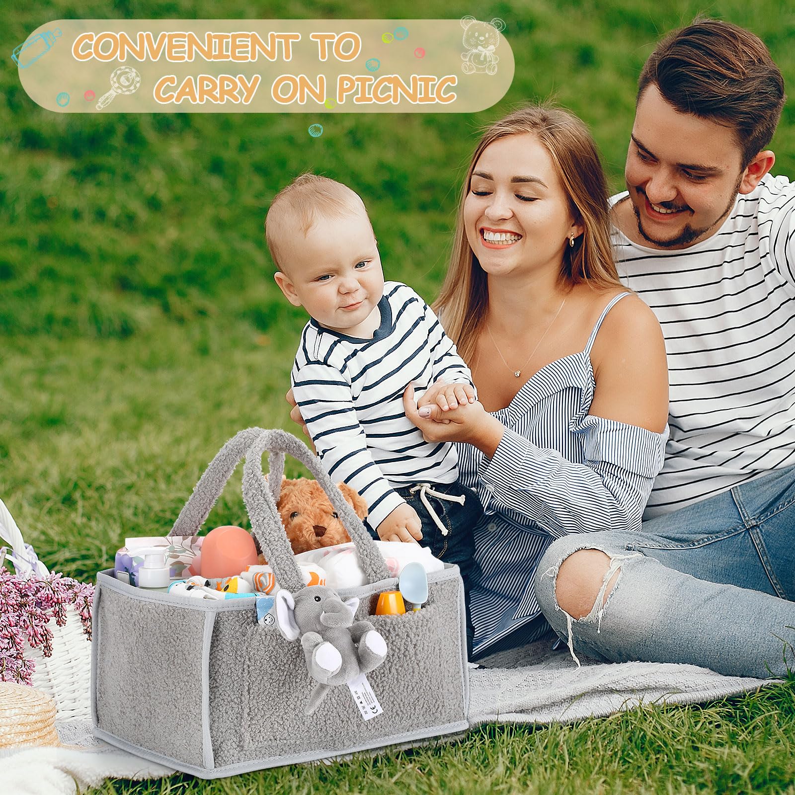 - Diaper Bag Organizer Set: you will receive 2 pcs baby diaper plush storage baskets and 2 pcs doll accessories and the caddy fit for storing diapers, wipes, baby clothes and all baby stuff, ideal for daily use or travel to help new parents stay organized
