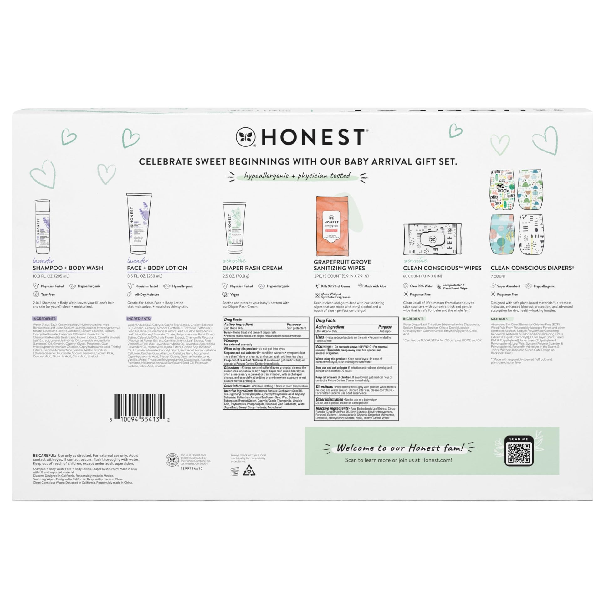 - Welcome Baby. The Honest Baby Arrival Gift Set includes bestselling, naturally-derived, hypoallergenic essentials for baby and parents. Add to your own Baby Registry or give it as a gift for a friend’s shower