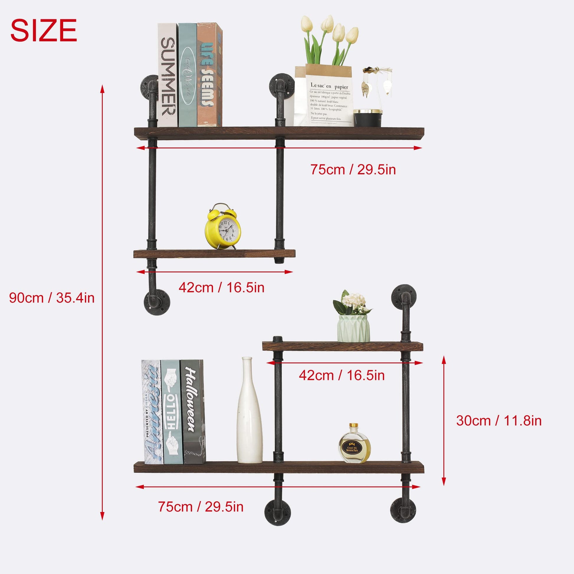 - We never use MDF or plywood material,our industrial pipe shelving with Solid wood planks.A set consists of two pairs of shelves. You can choose the installation method according to your preference.