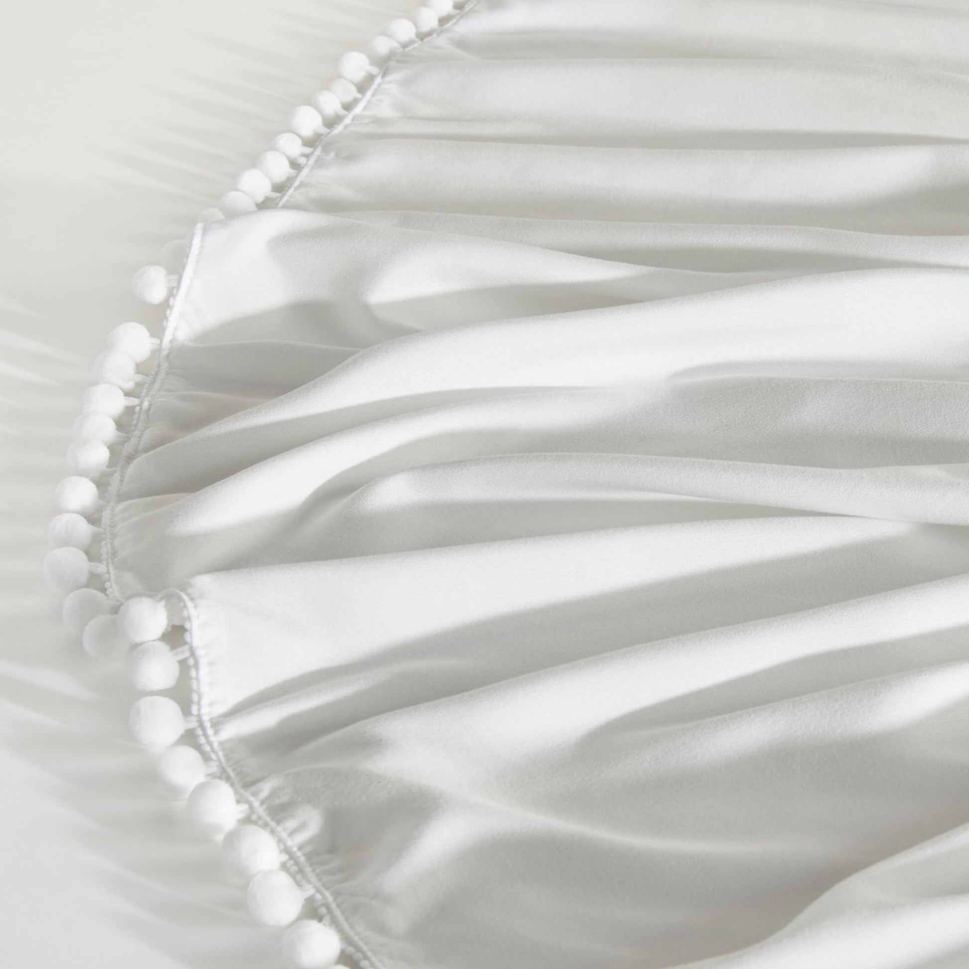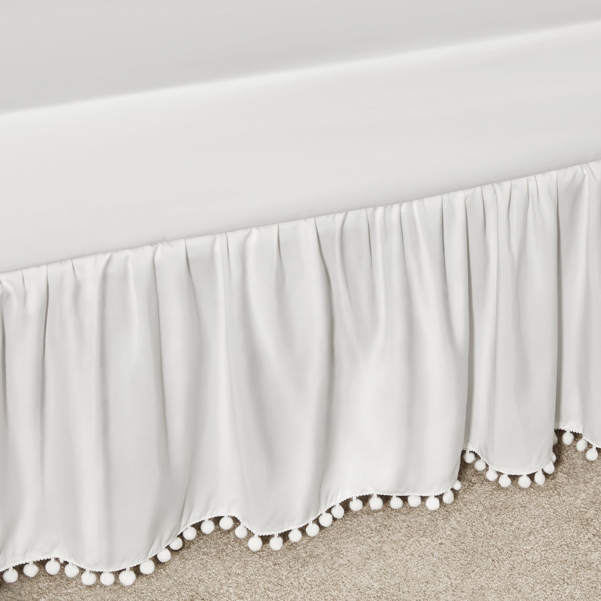 TILLYOU Baby Crib Skirt Girls Boys, Ruffled Bed Skirt with Pompoms, 28”x 52”, 14'' Drop, White