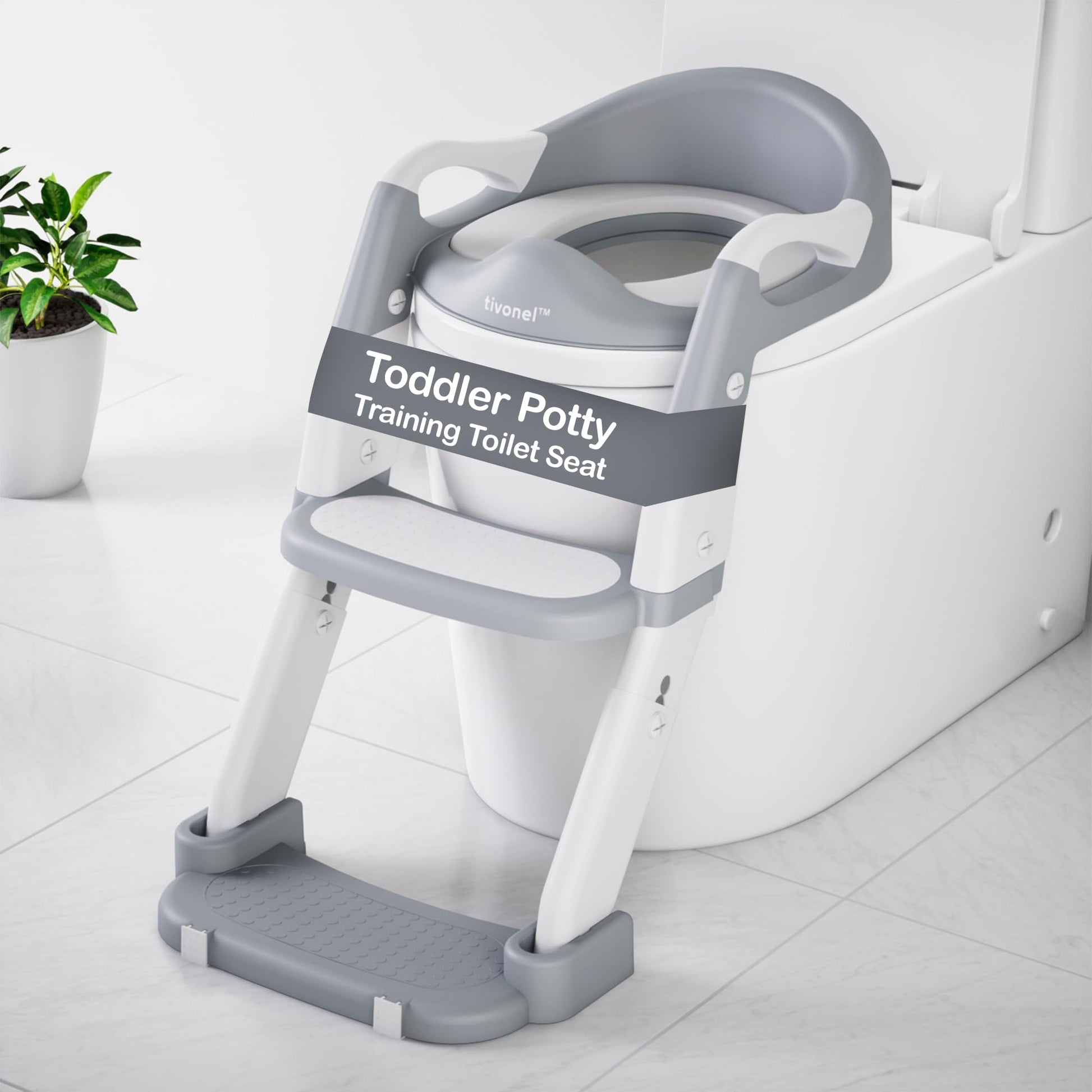 - SAFE, STABLE & WOBBLE-FREE: This potty seat with ladder features a non-slip base, sturdy step stool, and side handles so toddlers can climb up confidently. The seat locks securely even on taller toilets, to reduce fear and build independence during every potty session.