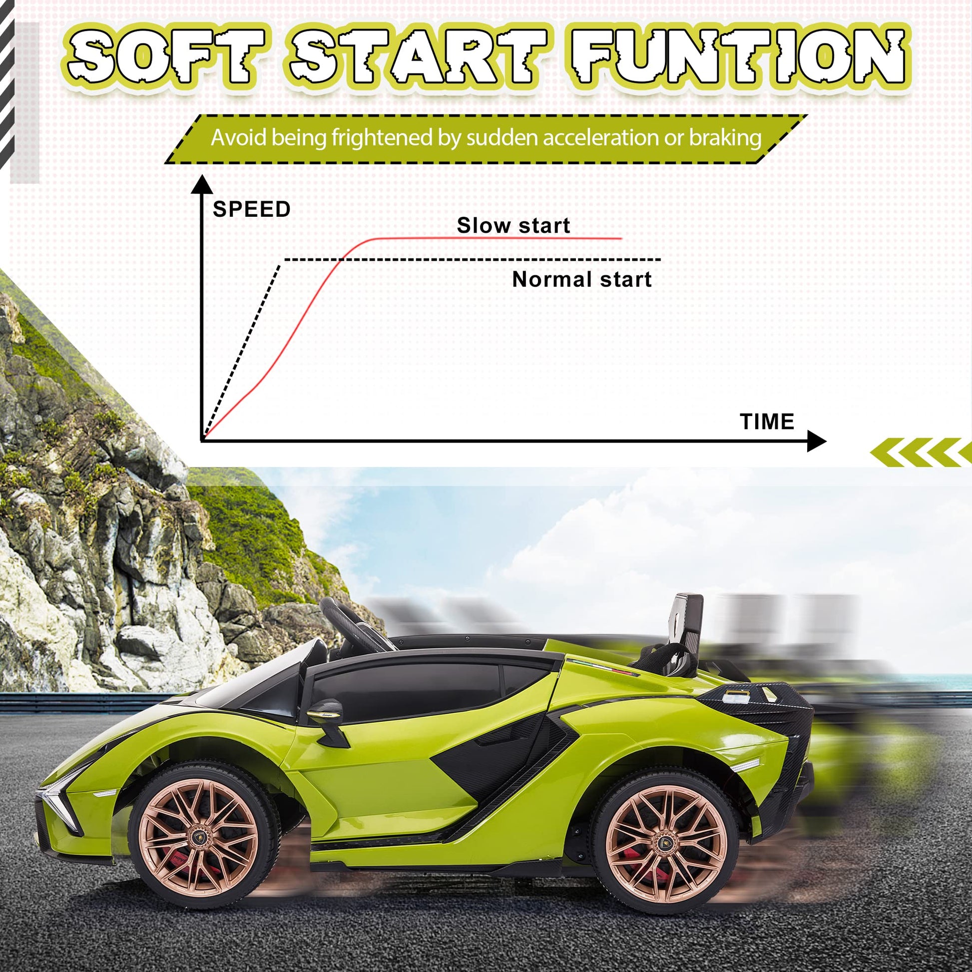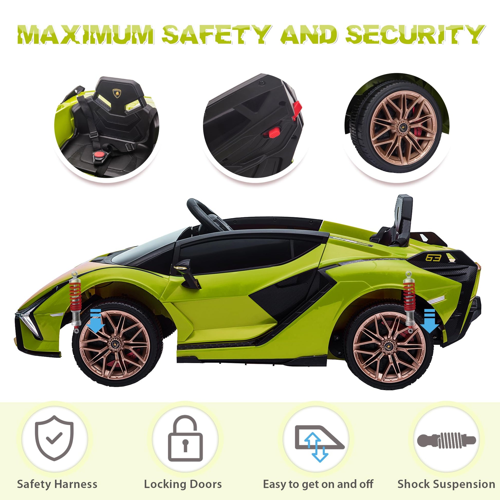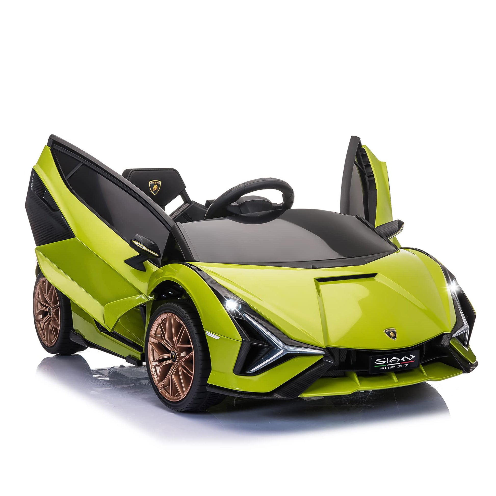 - IC DRIVING EXPERIENCE: This Officially Licensed Lamborghini Sian ride-on car comes with LED headlights, a horn and realistic engine sounds. The hydraulic-powered doors add to the authentic design, providing a realistic driving experience for your child.