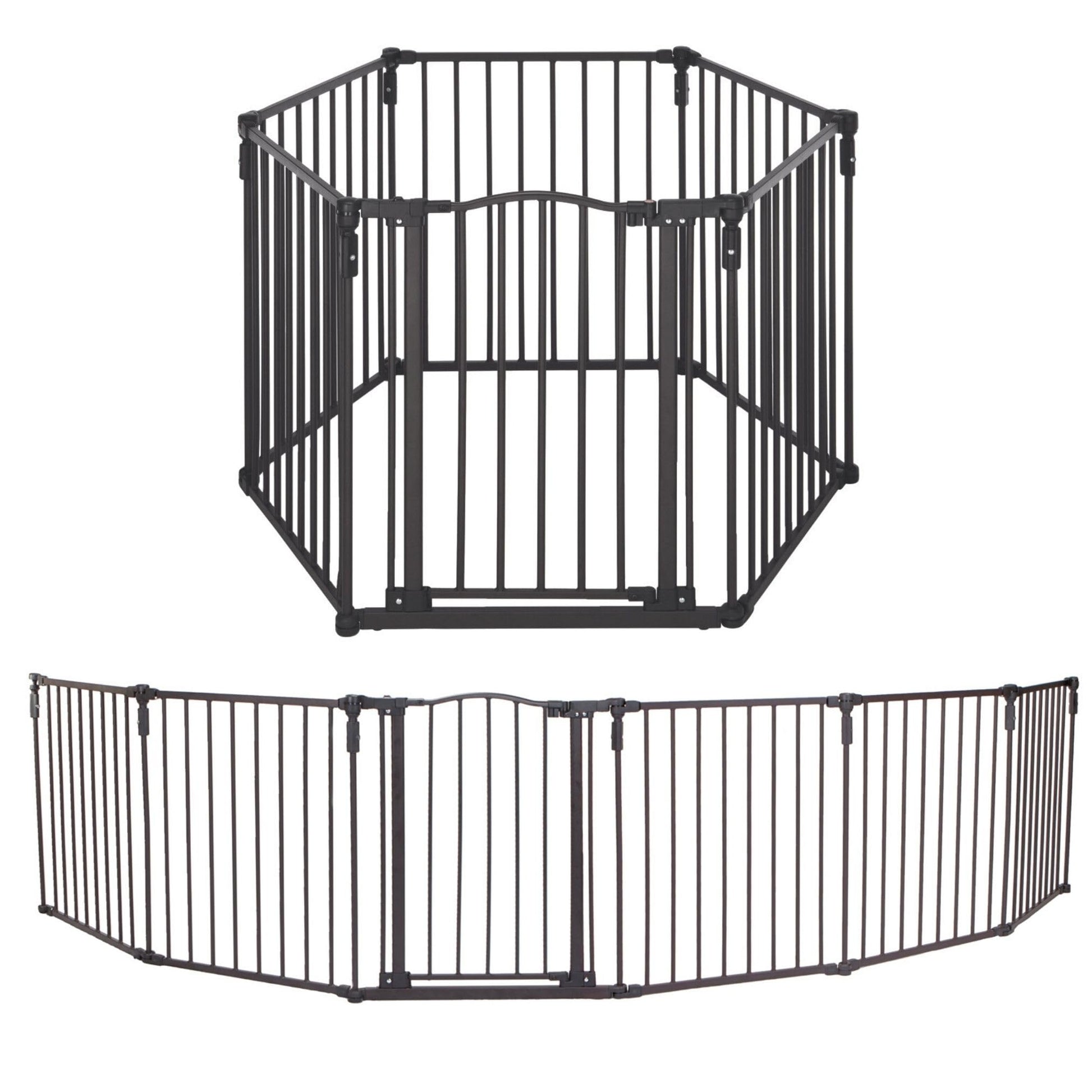 - INDOOR BABY GATE - Our child gate provides convenient options to fit your busy lifestyle. Can be used as a safety gate around the fireplace or as a christmas tree gate. The swinging walk-thru door panel is built with a child-proof double-locking system for easy access.