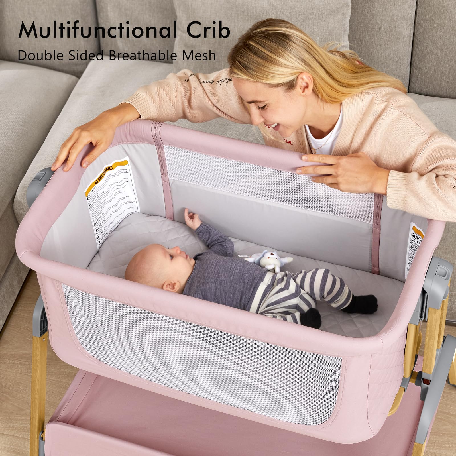 Bedside Sleeper, Rocking Bassinets with Comfy Mattress