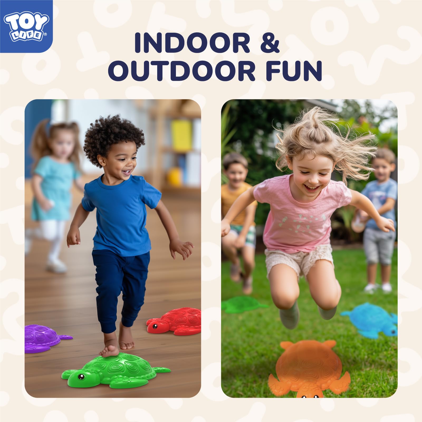 TOY Life 10 Pcs Turtle Balance Stepping Stone for Kids, Indoor Outside Toys for Kids Ages 4-8, Toddler Outdoor Toys, Stepping Stones Game, with Cards and Spinner