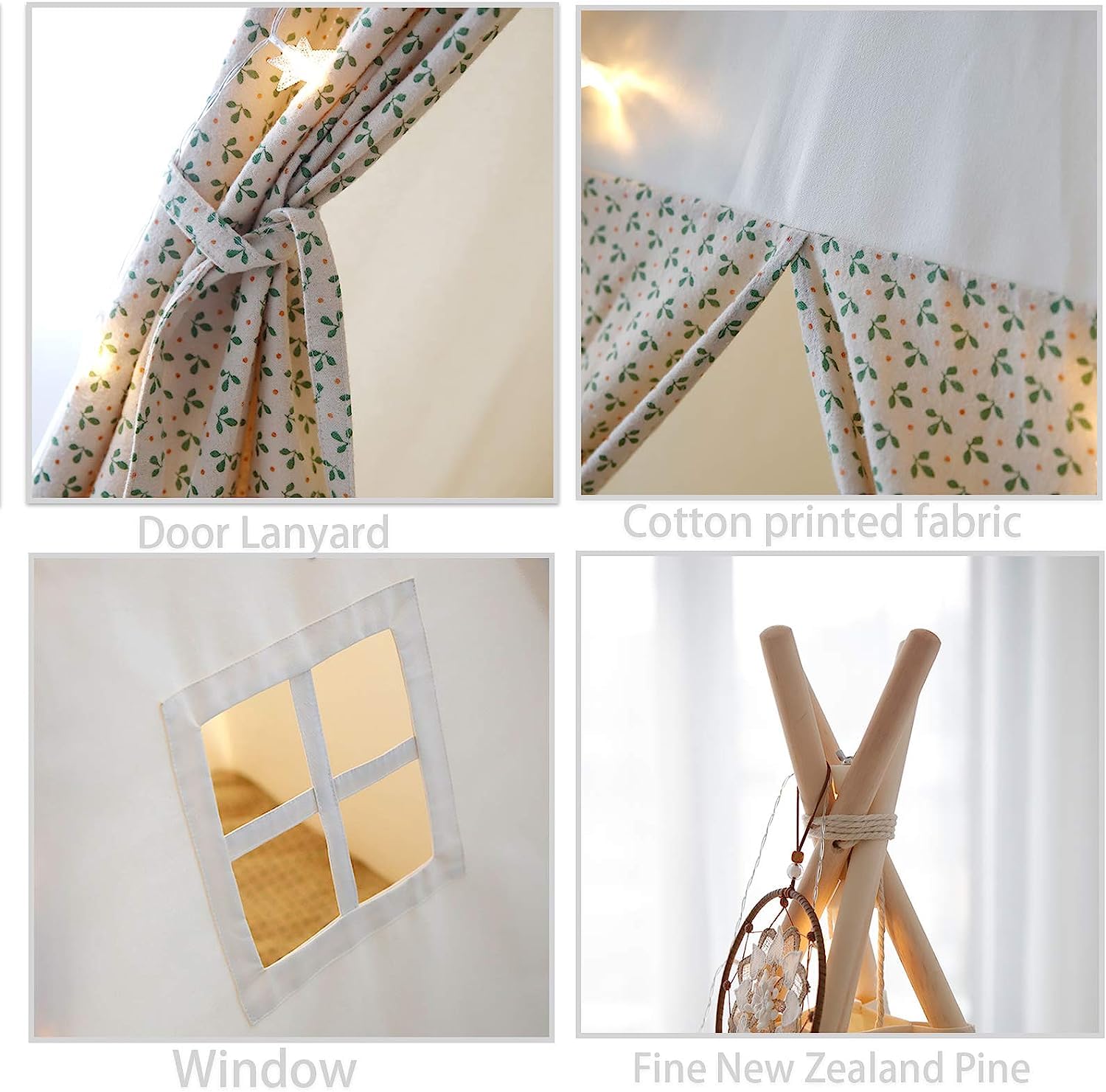 TreeBud Teepee Tent for Kids with Mat,Foldable Play Tents for Girl and Boy with Carrybag,Canvas Tipi Playhouse for Children Indoor Outdoor(Beige & Mat)