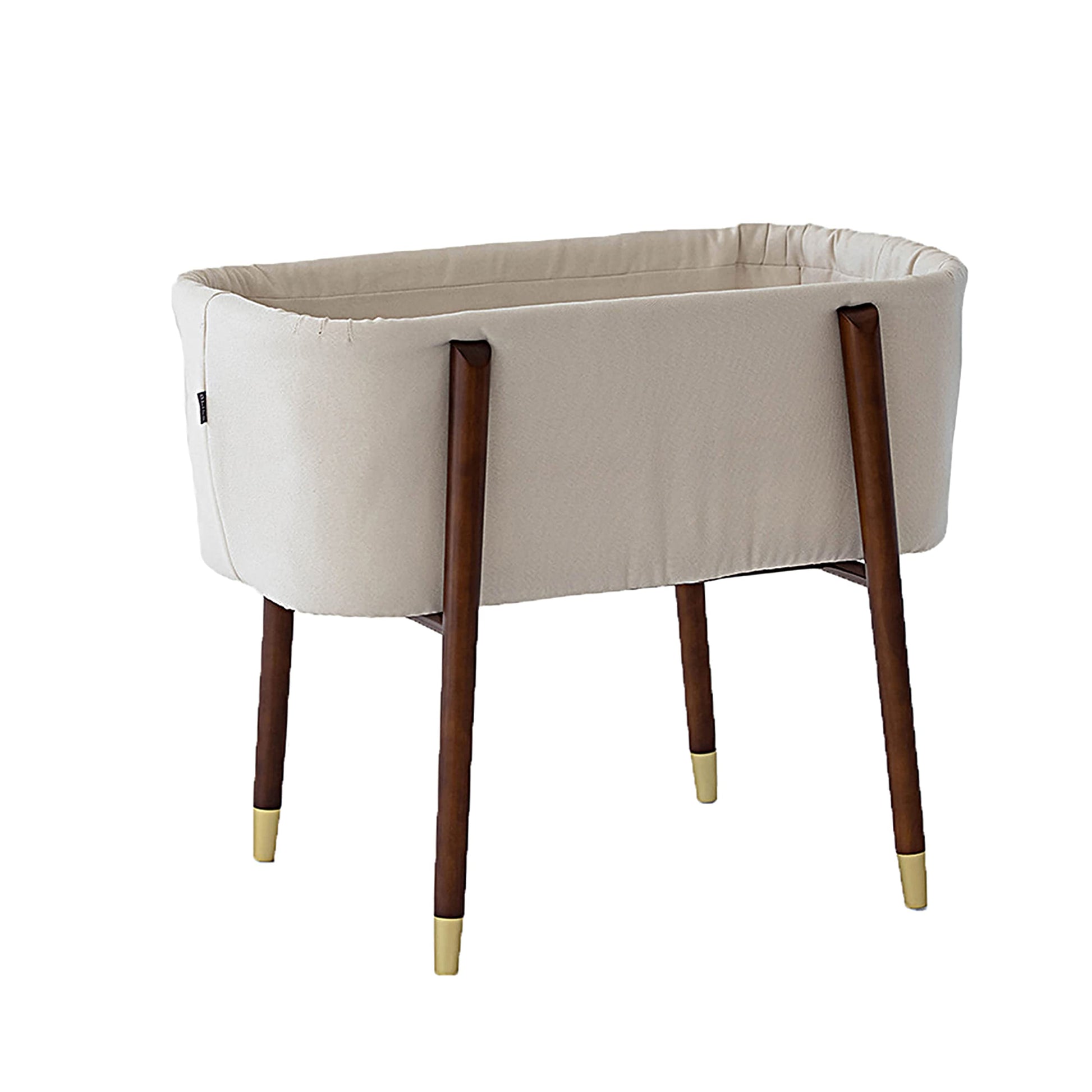 - Stylish Design: Our baby bassinet showcases a contemporary mid-century inspired design, wrapped in premium breathable woven fabrics. The beautifully tapered solid wooden legs are accented with brushed brass tips, adding a stylish touch to your nursery.