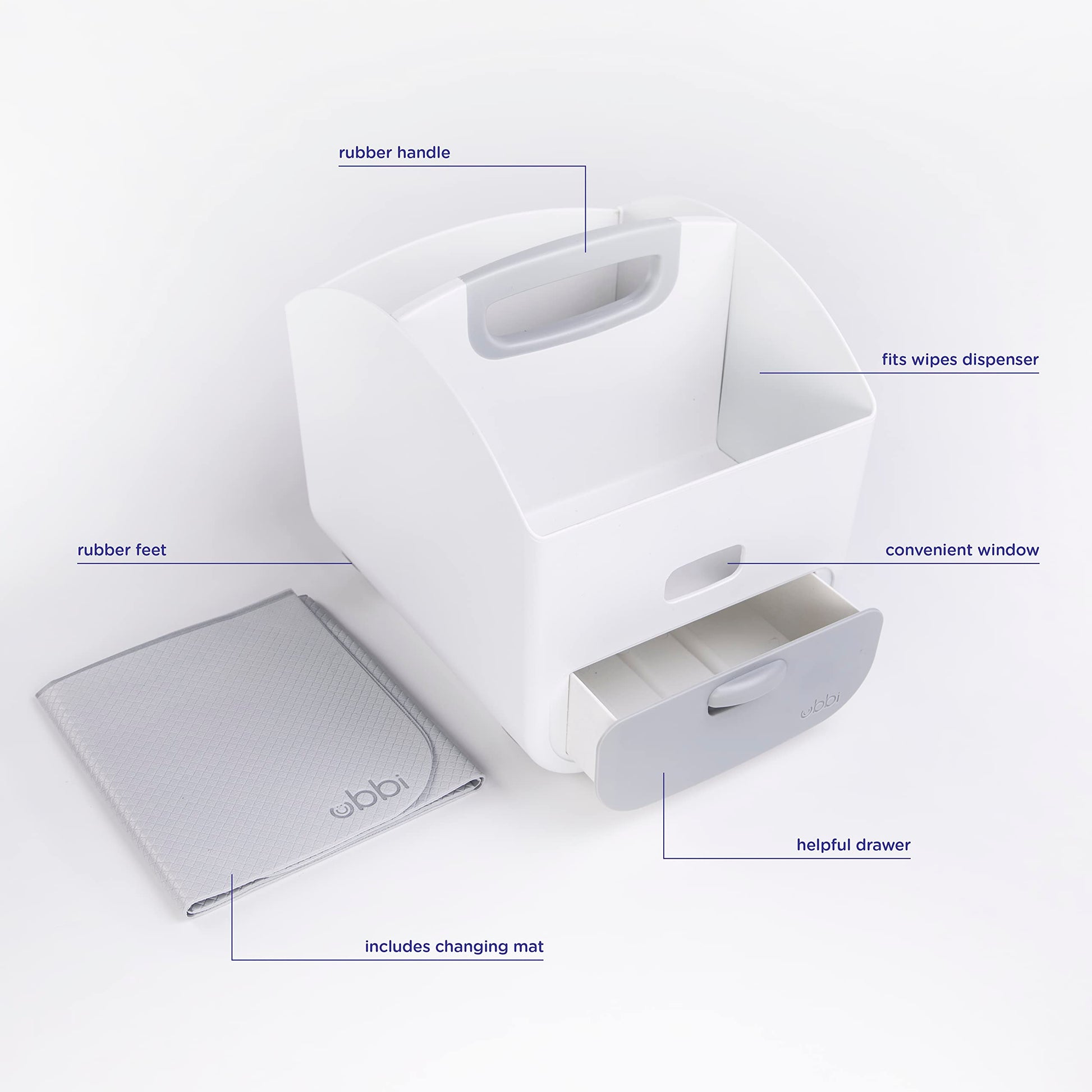 - Portable & Convenient: The Ubbi Portable Diaper Caddy and Changing Mat doubles as a portable changing station, featuring a rubberized handle and feet for easy carrying from room to room or on the go.
