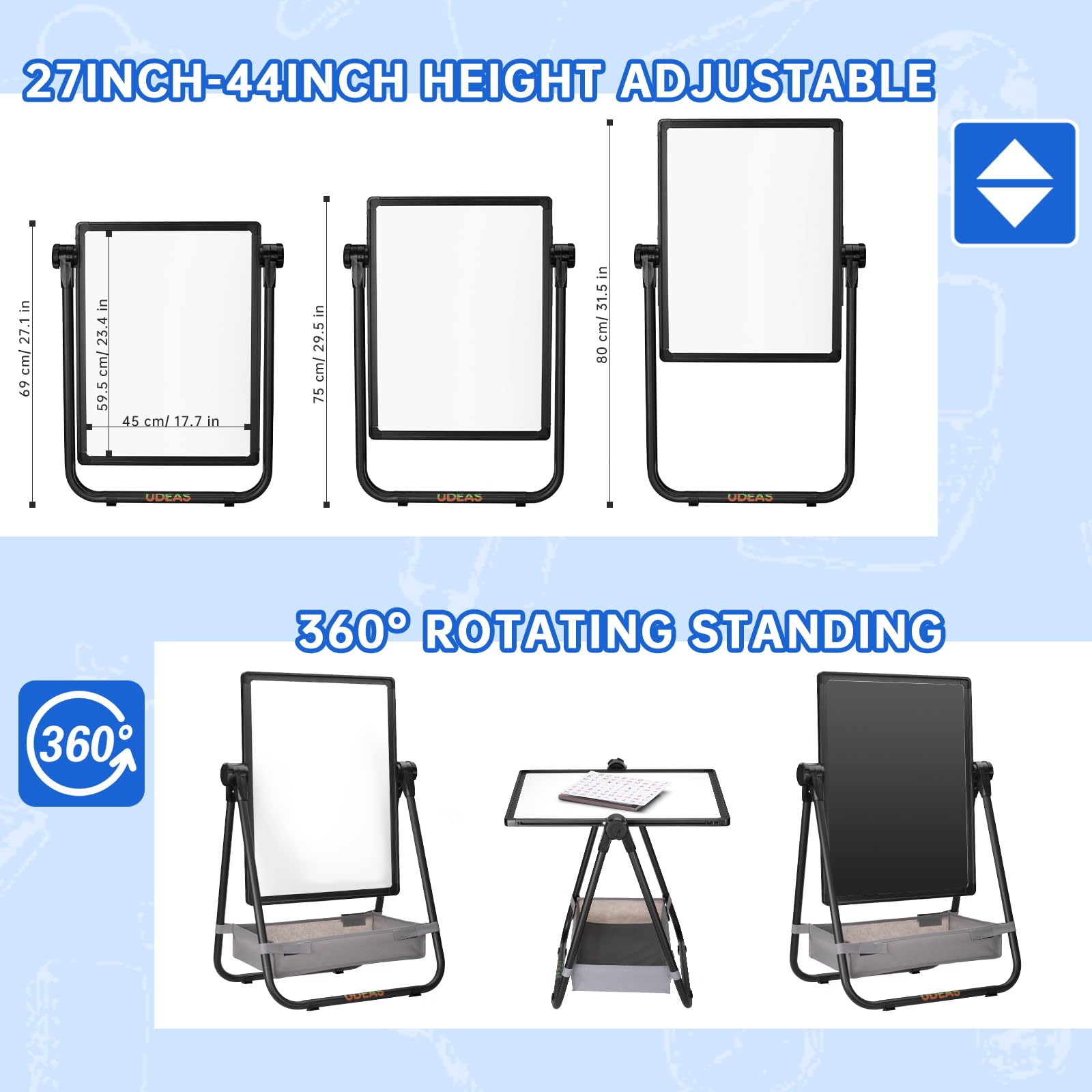 UDEAS Easel for Kids, Adjustable Standing Toddler Easel Magnetic Whiteboard & Chalkboard with 27inch-44inch Height, Double Sided 360°Rotating Kids Art Easel for Toddlers for Boys and Girls 3+