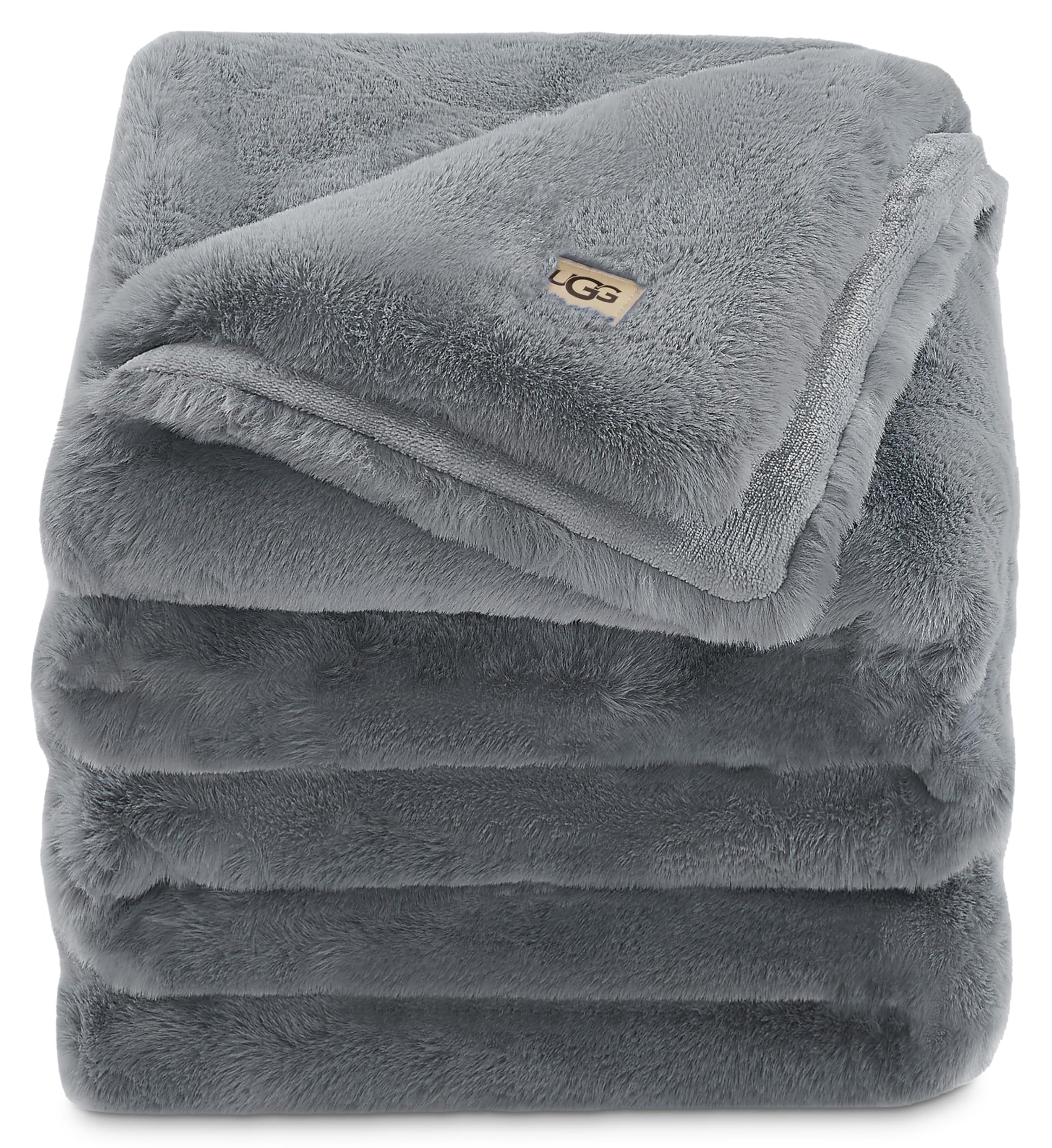 - UGG Luxury Plush Faux Fur Throw: Add warmth and elegance to your home decor with this faux fur throw blanket. Featuring an ultra-plush texture, this fluffy blanket delivers a cozy feel, bringing both comfort and style to your bed, couch, or chair.