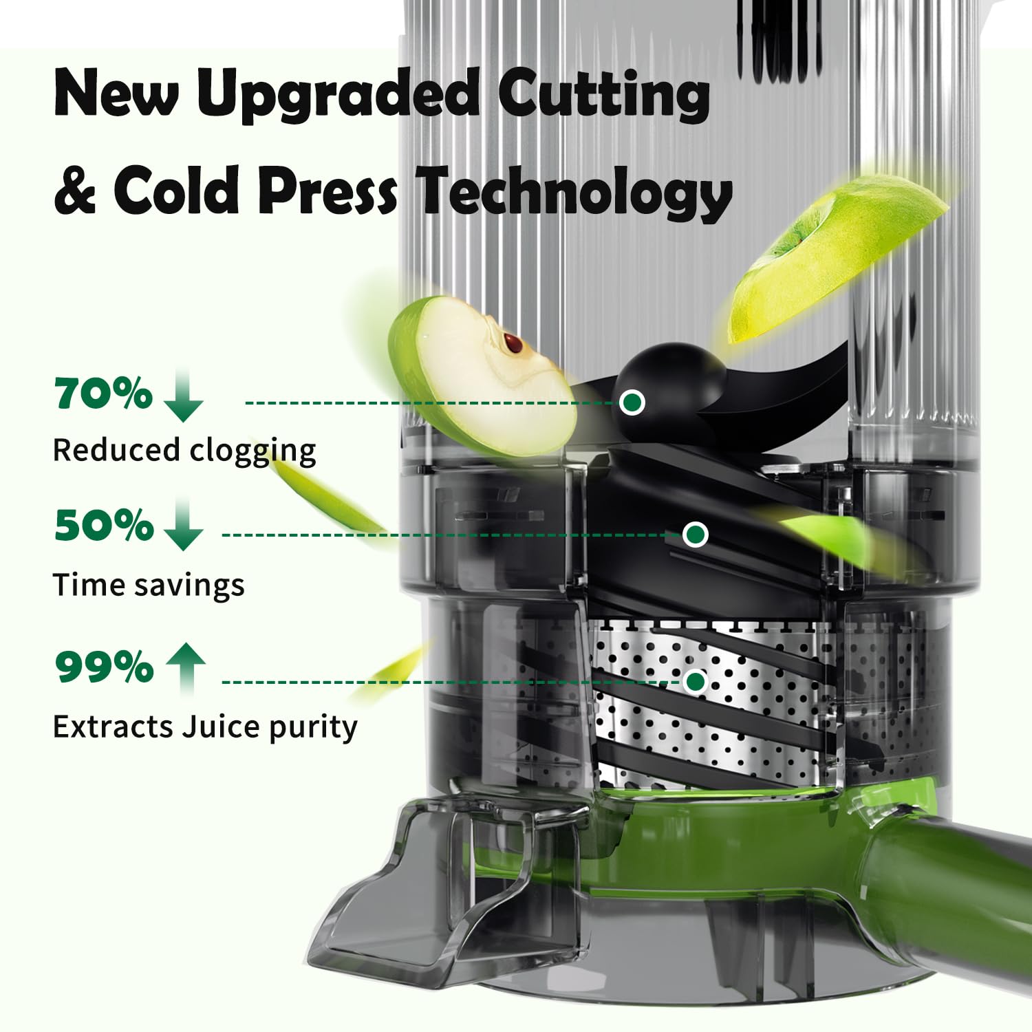 - 【Advanced 7-Stage Spiral Masticating System】: Our upgraded spiral auger ensures maximum juice extraction with minimal heat buildup. more vitamins and enzymes while reducing oxidation—perfect for health-conscious users who crave fresh, vibrant flavors.