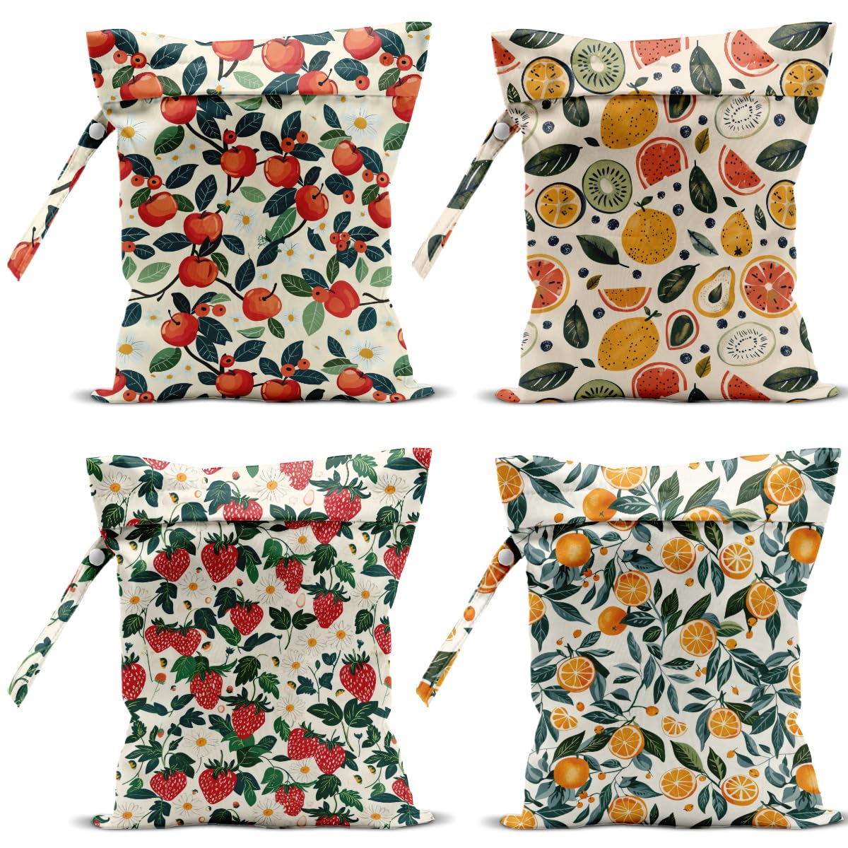 4 Pack Cute Fruit Wet Bag Waterproof Washable Reusable iaper Travel Beach Pool