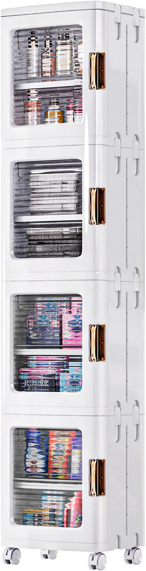 4-Tier Plastic Tall Narrow Storage Cabinet with Movable Wheels