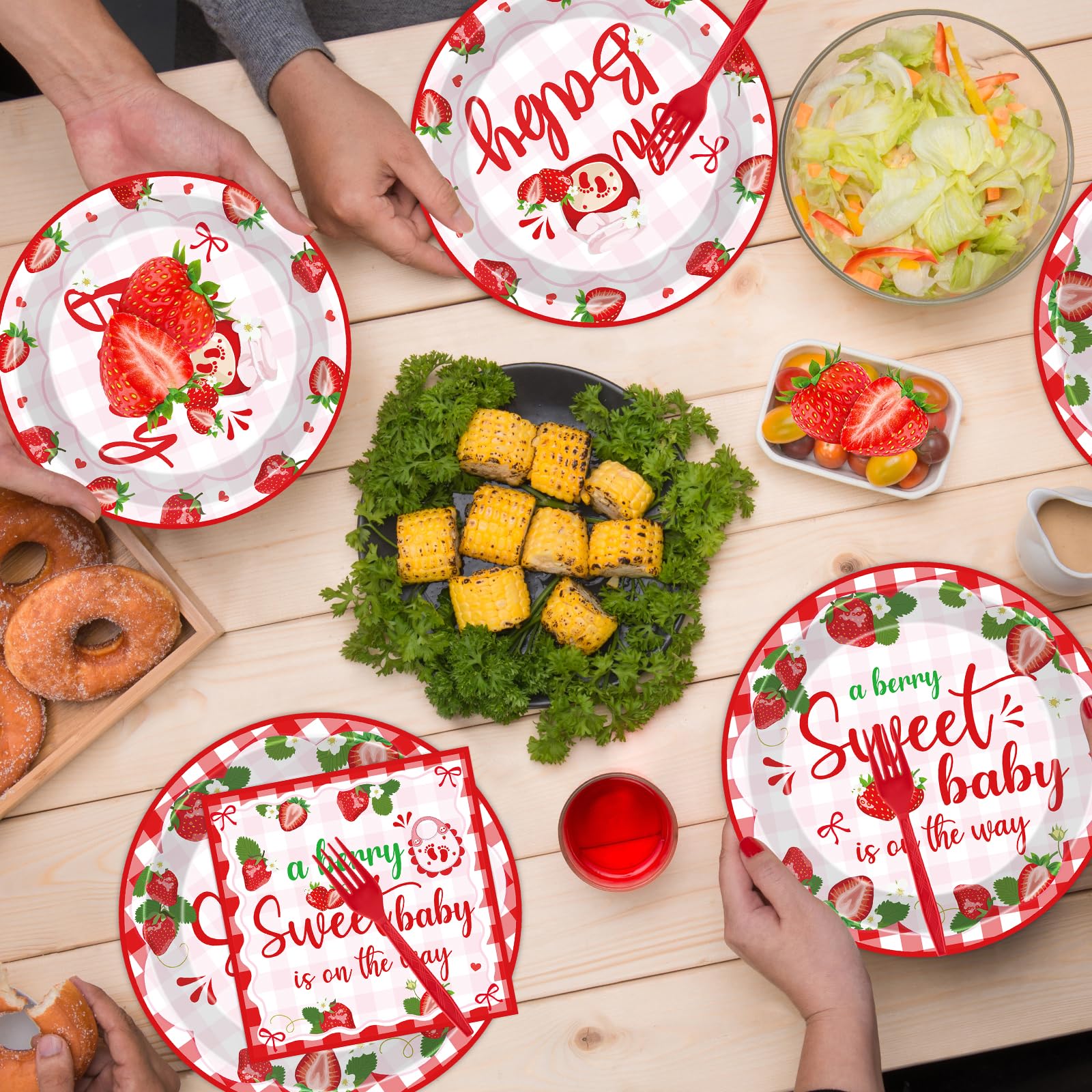 VorkiVecKi Strawberry Baby Shower Decorations - 96 Pcs Pink A Berry Sweet Baby Is on The Way Plates Napkins Supplies for Girls Gender Reveal Party Disposable Shortcake Tableware Sets Serves 24 Guests