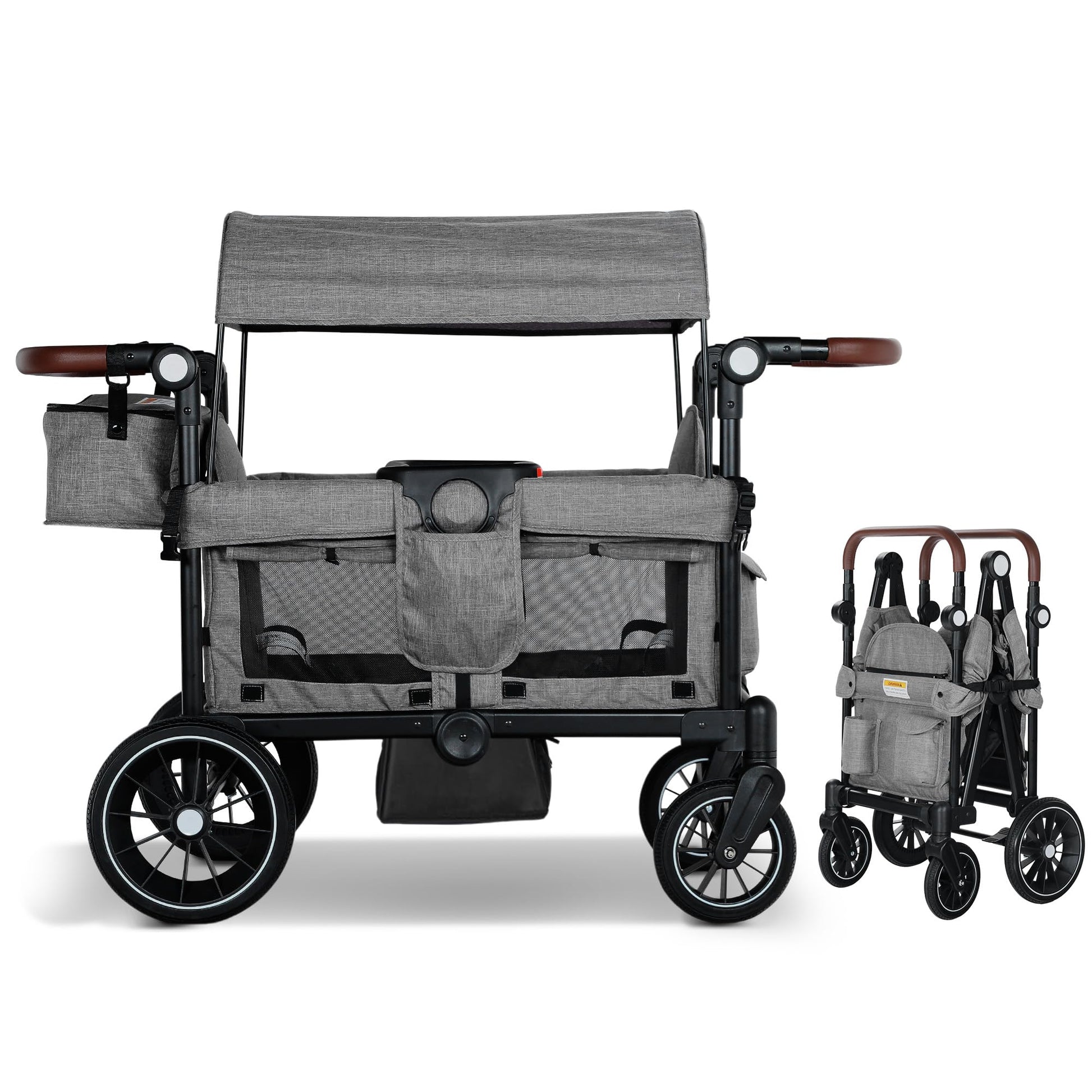 - WAGON WITH CANOPY: Sliding and detachable canopy to protect kids from the sun or afternoon showers; Deep carriages with breathable netting to keep children cool and dry; You can use this wagon at beaches, parks, camping, touring, shopping and more