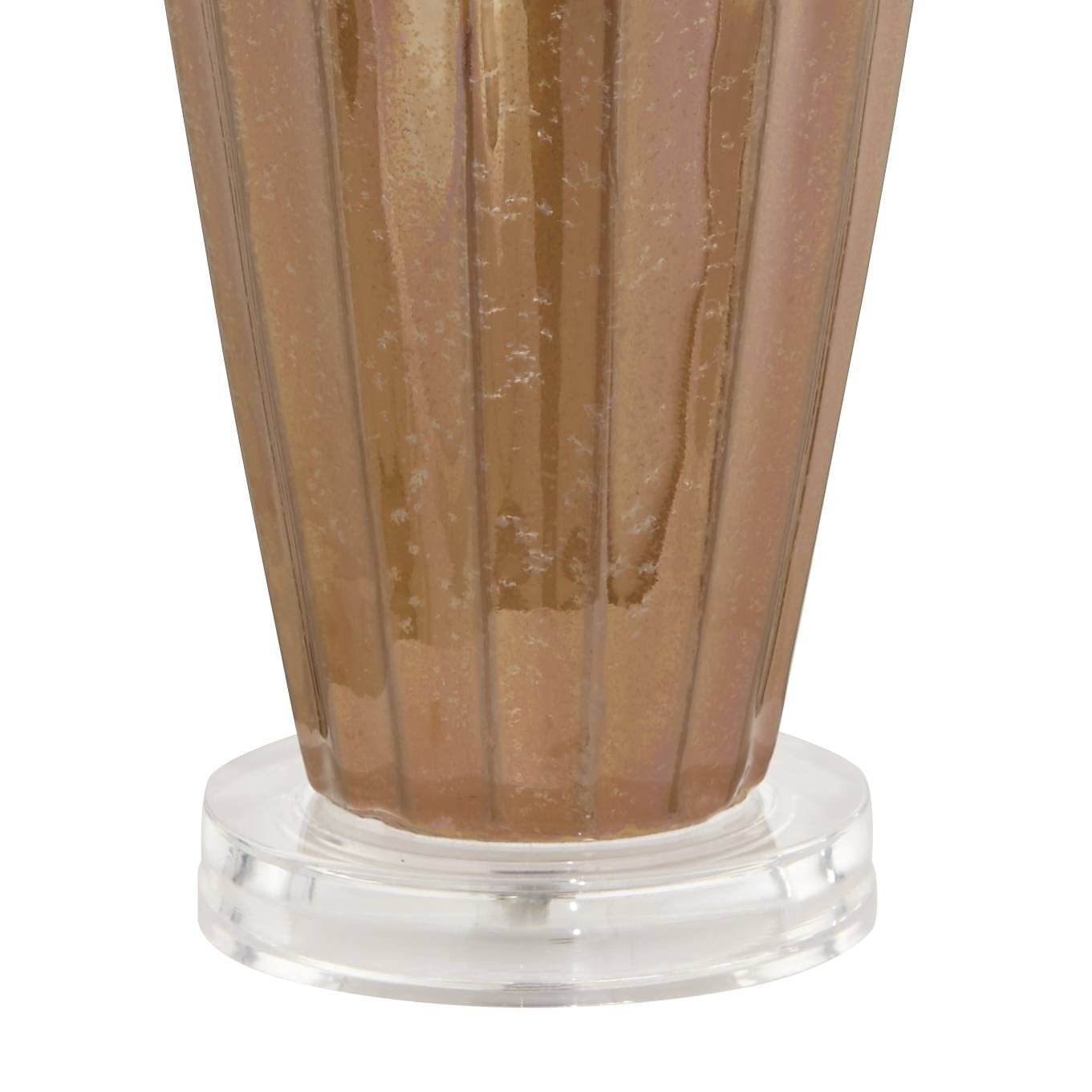 - Hand-applied ivory drip ceramic glaze. Each lamp will vary slightly in color and pattern. Round acrylic accent at the very bottom.