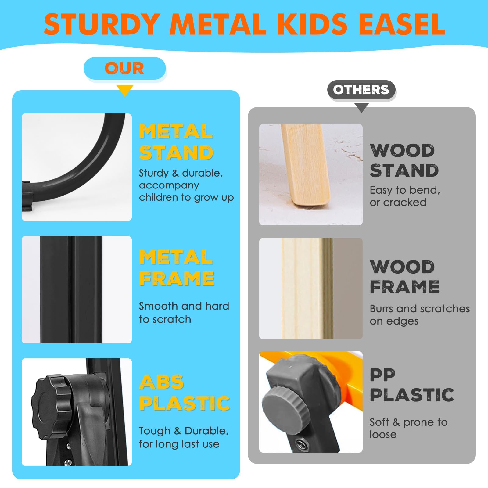 - Sturdy & Safe Construction: Made of premium metal and durable plastic—more long-lasting than wooden easels. All edges and surfaces are smooth and burr-free for safe, extended use