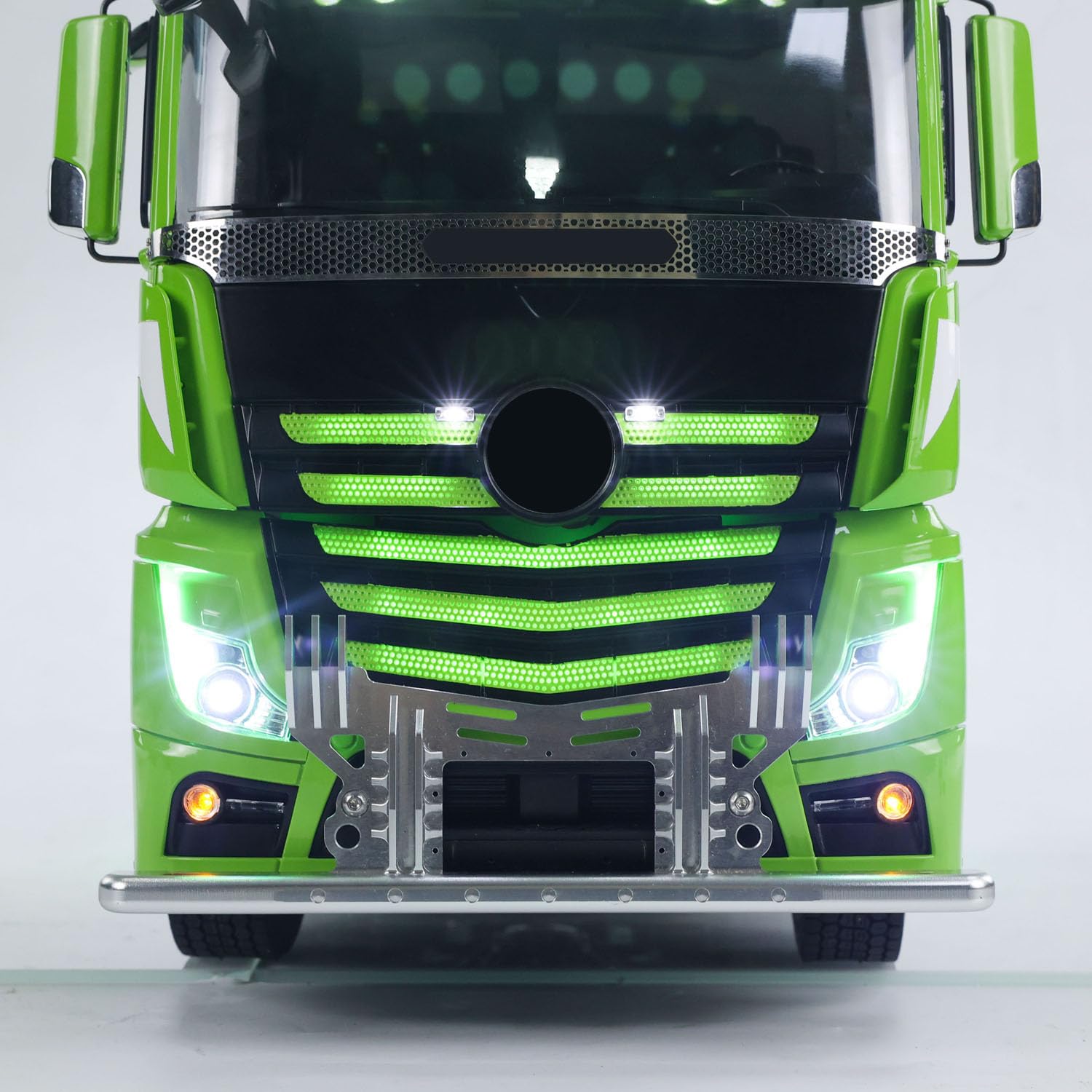 - Decorative Lights: The tractor truck is equipped with various lights including roof warning lights, roof spotlights, sun visor round lights, front face lights, front face honeycomb strip lights, fender lights, contour lights, doll lights, and logo lights, making the truck even more captivating.