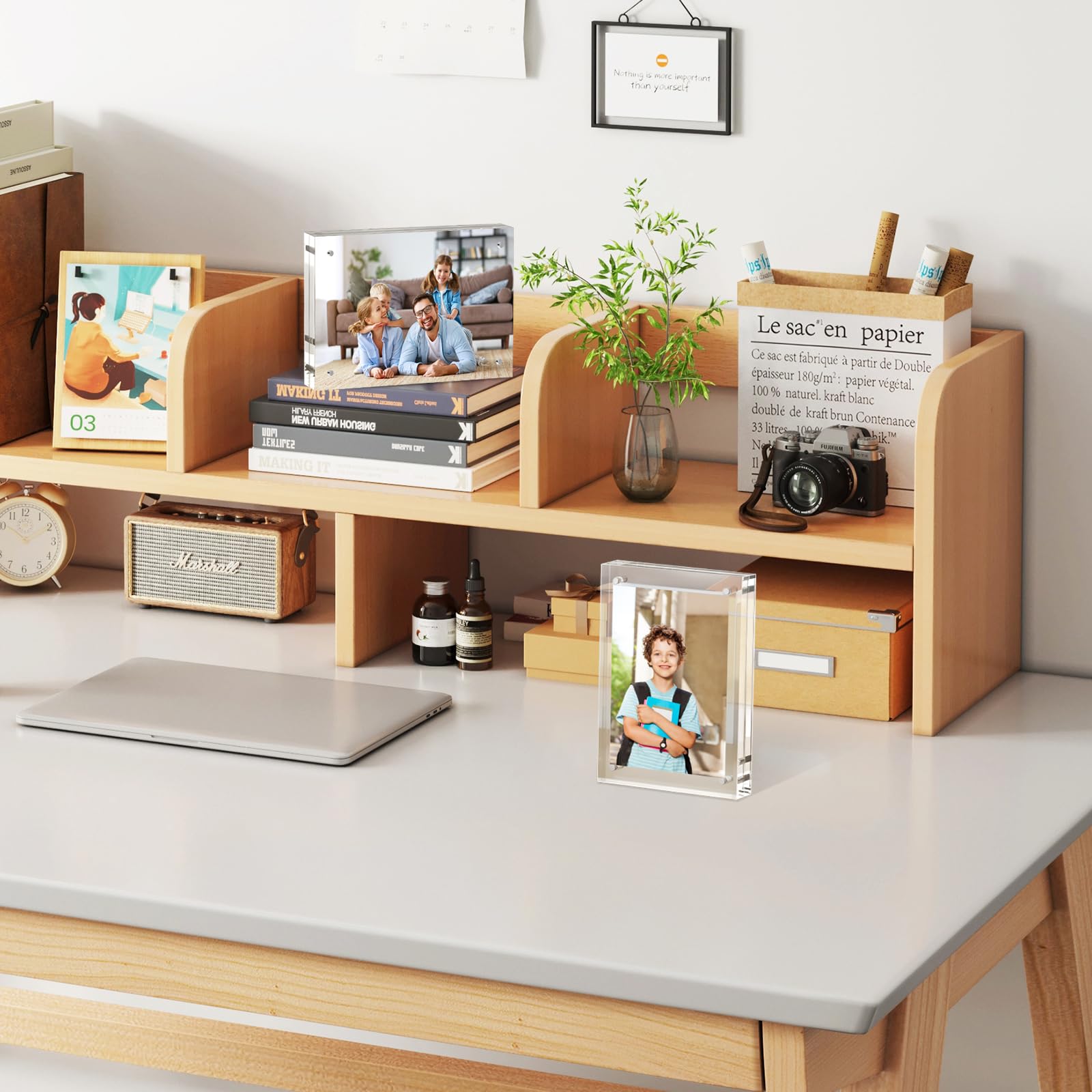 - Excellent Material Selection: We choose high quality and light definition acrylic,which will show off your photos better, acrylic frame very durable, sturdy, re-usable, not easy fragile and broken. Frameless acrylic frame can stand on desktop horizontally or vertically, but not hang, perfect for people to decorate their home, office or studio.