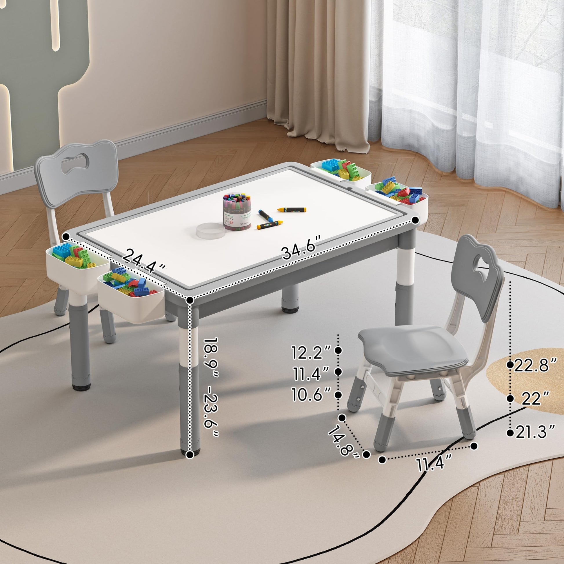 - Easy to Assemble & Surprise: Features a build-and-play table with removable cover, 2 chairs, and 4 storage containers. The installation process is very simple. Also this children table and chair set can be a good partner for kid's birthday or Christmas, which is great for your kids improving creativity and imagination. It can be used for daycare, classroom, home and etc.