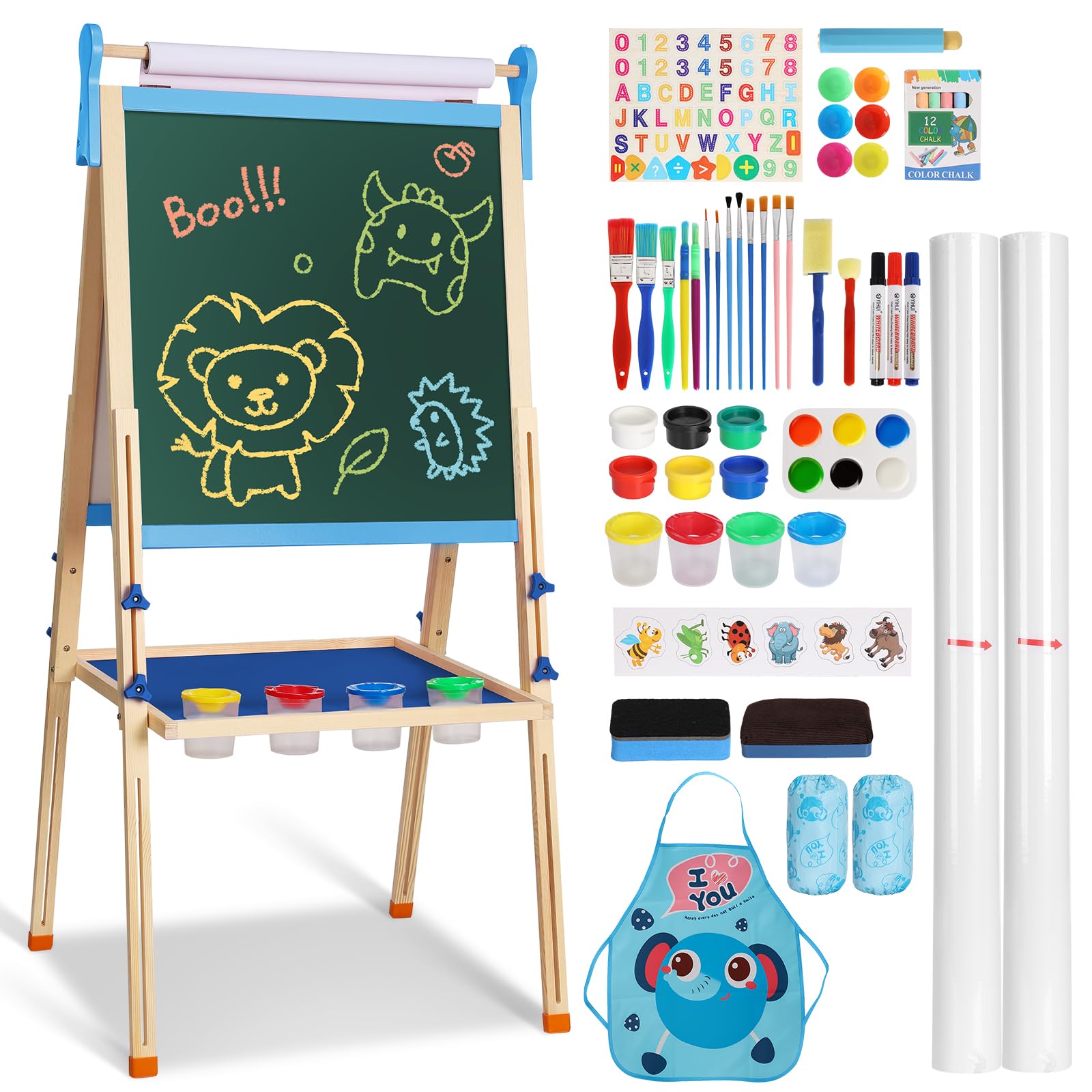 - Adjustable Height Easel for Different Child Height:It's a wooden kid's easel double-sided adjustable standing art easel.You can adjust the height from 29.9 to 53.5 inches,adapt for age 3+ years and height of the kids